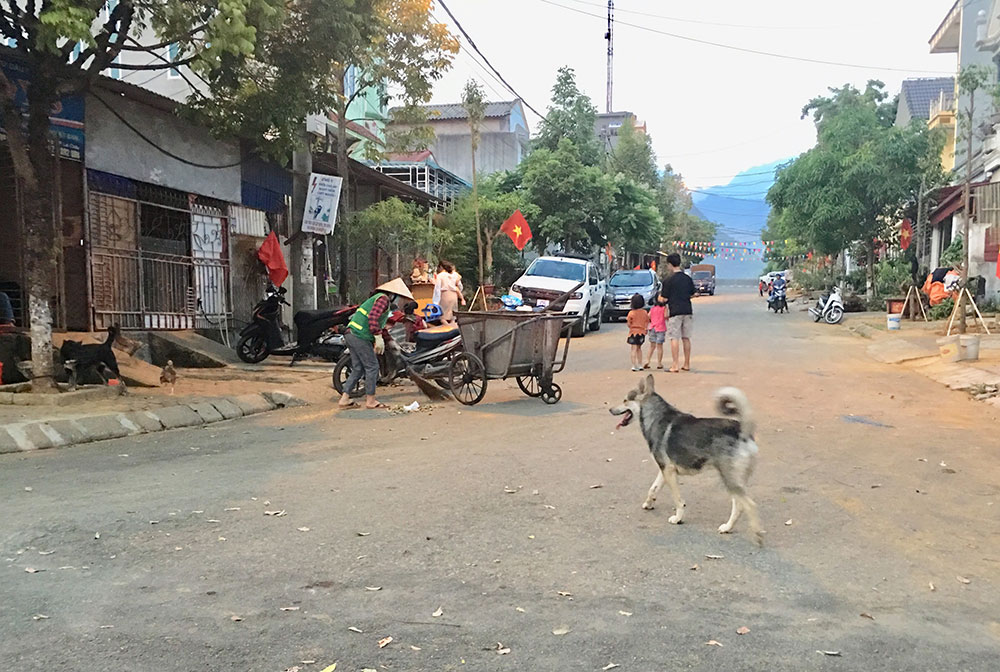 Tình trạng chó thả rông không rọ mõm vẫn diễn ra phổ biến trên địa bàn thành phố Lai Châu. (Ảnh: Phương Thảo)