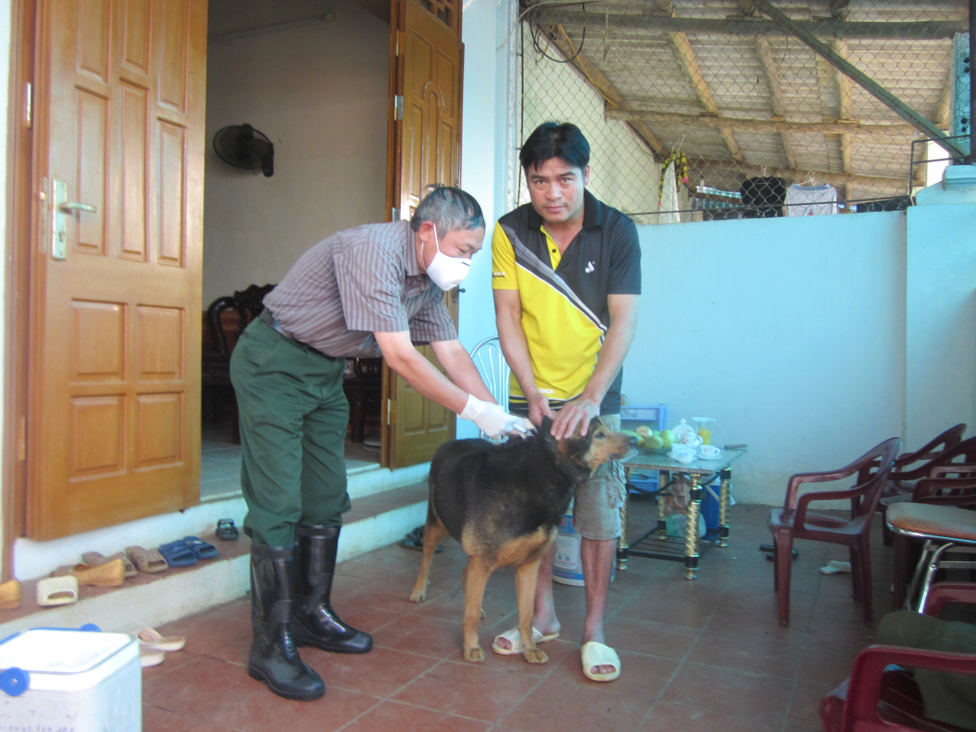 ![]() Cán bộ Thú y phường Đông Phong, thành phố Lai Châu tiêm phòng vắc xin Dại cho chó trên địa bàn. |