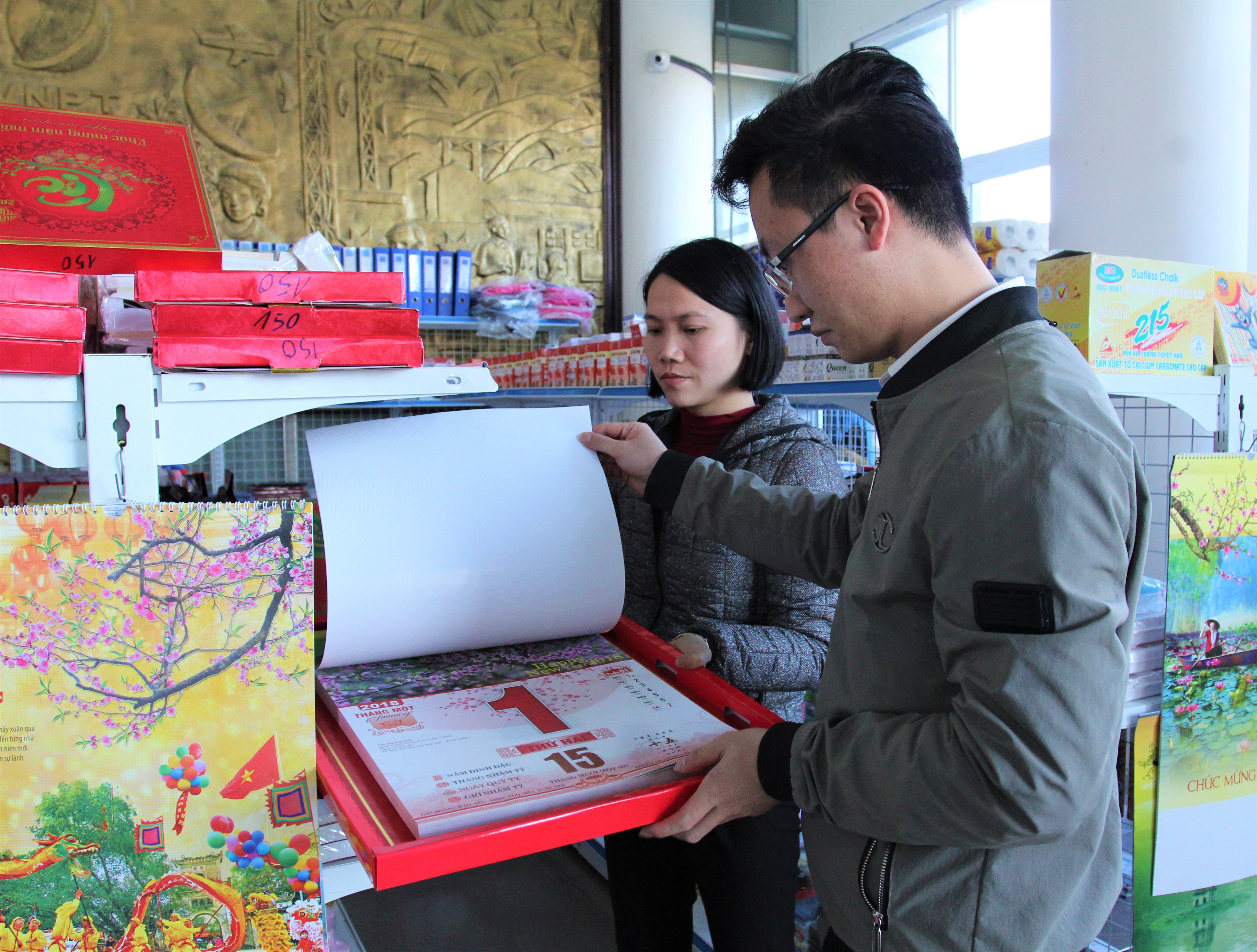 Tại Bưu điện thành phố Lai Châu, anh Nguyễn Khánh Dương, Phó Giám đốc Bưu điện thành phố cho biết: Ngay từ tháng 6, chúng tôi đã chủ động lên catalo mang tới cho khách hàng lựa chọn mẫu mã hoặc nhận thiết kế mẫu riêng cho từng đơn vị theo yêu cầu. Cuối tháng 8 chúng tôi đã làm xong khâu thị trường để bắt đầu đặt, làm lịch. Đến nay cơ bản chúng tôi đã cung cấp cho các đơn vị đặt hàng đồng thời chuyển giao lịch tới bưu điện các huyện để đưa tới tận các điểm bưu điện văn hóa xã.