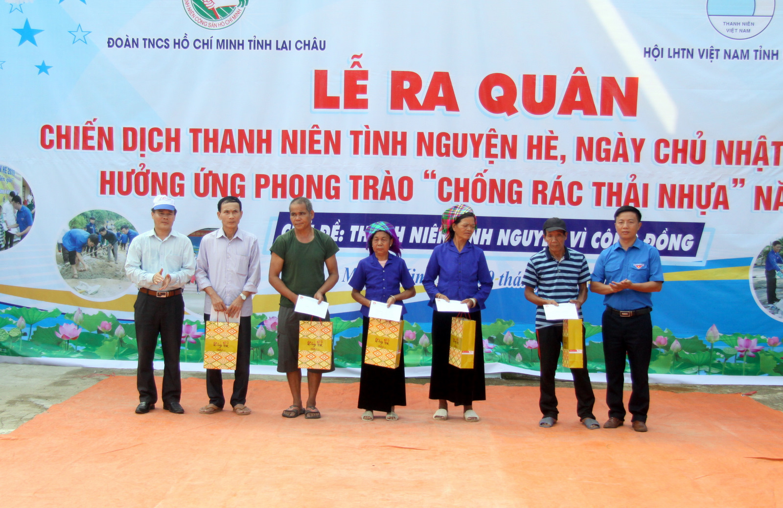 Tại buổi Lễ, Tỉnh Đoàn đã trao 40 triệu đồng hỗ trợ 2 gia đình chính sách xóa nhà tạm tại bản Nà Khương, Nà Then; trao 5 suất quà cho hộ gia đình chính sách, người có công, người cao tuổi có hoàn cảnh khó khăn xã Mường Kim.