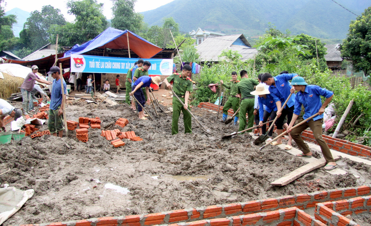 Đoàn viên, thanh niên tham gia hỗ trợ gia đình chính sách xóa nhà tạm.