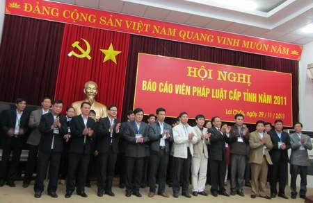 Cũng tại Hội nghị đại diện lãnh đạo Sở Tư pháp đã công bố Quyết định công nhận Báo cáo viên pháp luật cấp tỉnh cho 44 báo cáo viên. Đồng chí Lê Xuân Phùng - Ủy viên Ban Thường vụ Tỉnh ủy, Phó Chủ tịch UBND tỉnh trao thẻ báo cáo viên pháp luật cho các báo cáo viên.