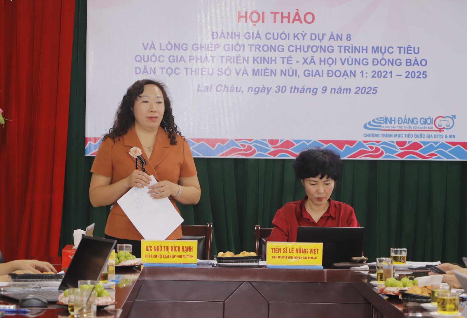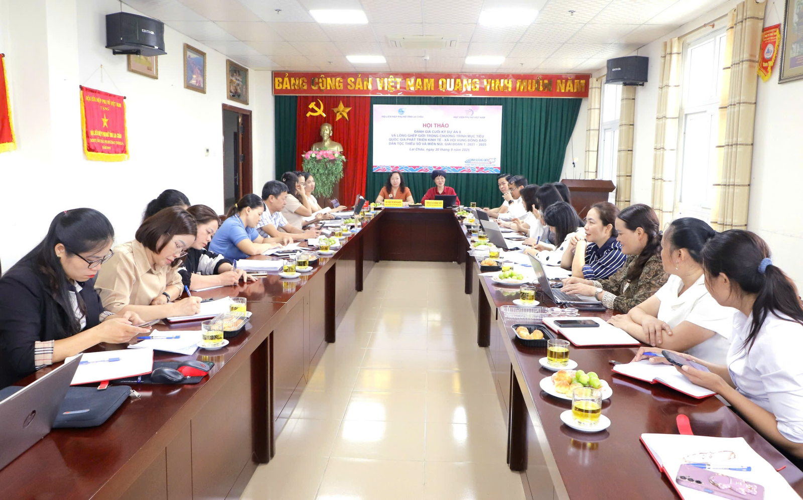 Theo báo cáo tại Hội thảo, sau 5 năm thực hiện Dự án 8 “Thực hiện bình đẳng giới và giải quyết những vấn đề cấp thiết đối với phụ nữ và trẻ em” thuộc Chương trình mục tiêu quốc gia dân tộc thiểu số và miền núi giai đoạn 2021 - 2025 trên địa bàn tỉnh Lai Châu đã đạt được nhiều kết quả rõ nét, góp phần nâng cao nhận thức trong cộng đồng về giới và bình đẳng giới; thay đổi “nếp nghĩ, cách làm”, xóa bỏ các định kiến và khuôn mẫu giới trong gia đình và cộng đồng, những tập tục có hại và giải quyết một số vấn đề xã hội cấp thiết cho phụ nữ và trẻ em. Từ năm 2021, Ban Thường vụ Hội Liên hiệp Phụ nữ tỉnh đã chủ động phối hợp với các sở, ban, ngành có liên quan tổ chức 132 lớp tập huấn; 16 hội thi; 111 cuộc đối thoại chính sách; thành lập 403 Tổ truyền thông cộng đồng, 73 Câu lạc bộ thủ lĩnh của sự thay đổi; 221 cuộc truyền thông; hỗ trợ ban đầu cho 144 Tổ truyền thông cộng đồng; hỗ trợ 494 phụ nữ dân tộc thiểu số sinh đẻ an toàn; 62 địa chỉ tin cậy cộng đồng được củng cố, nâng cao chất lượng trên cơ sở mô hình hiện có/hoặc thành lập mới… Qua các hoạt động trên đã nâng cao kỹ năng, nhận thức, thay đổi định kiến, khuôn mẫu giới cho đội ngũ cán bộ Hội và người dân, từng bước tập trung giải quyết có hiệu quả một số vấn đề cấp thiết đối với phụ nữ và trẻ em vùng dân tộc thiểu số và miền núi.