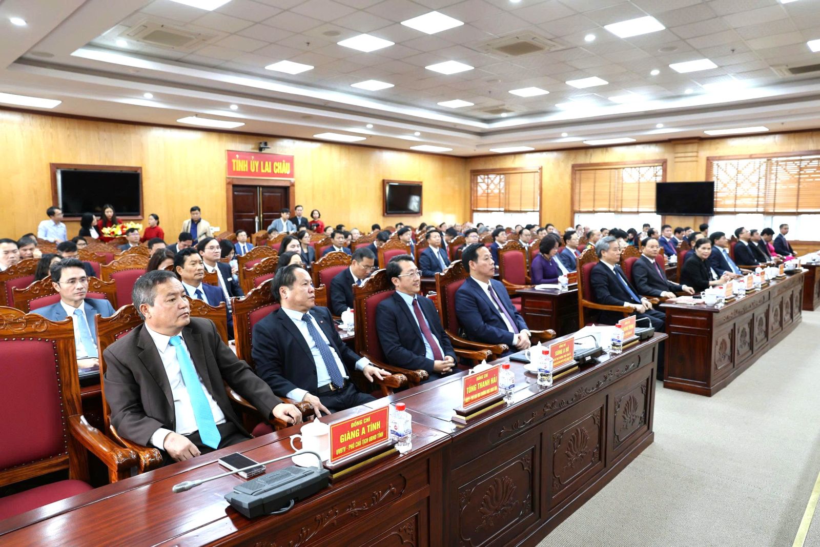 Dự Hội nghị có các đồng chí: Giàng Páo Mỷ - Ủy viên Ban Chấp hành Trung ương Đảng, Chủ tịch HĐND tỉnh, Trưởng Đoàn đại biểu Quốc hội tỉnh Lai Châu; Lê Minh Ngân - Bí thư Tỉnh ủy Lai Châu; Trần Tiến Dũng - Bí thư Tỉnh ủy Điện Biên; các đồng chí trong Đoàn công tác của Ban Tổ chức Trung ương; các đồng chí Ủy viên Ban Thường vụ Tỉnh ủy, Thường trực HĐND, UBND tỉnh, đại diện lãnh đạo các sở, ban, ngành tỉnh Lai Châu, tỉnh Điện Biên...