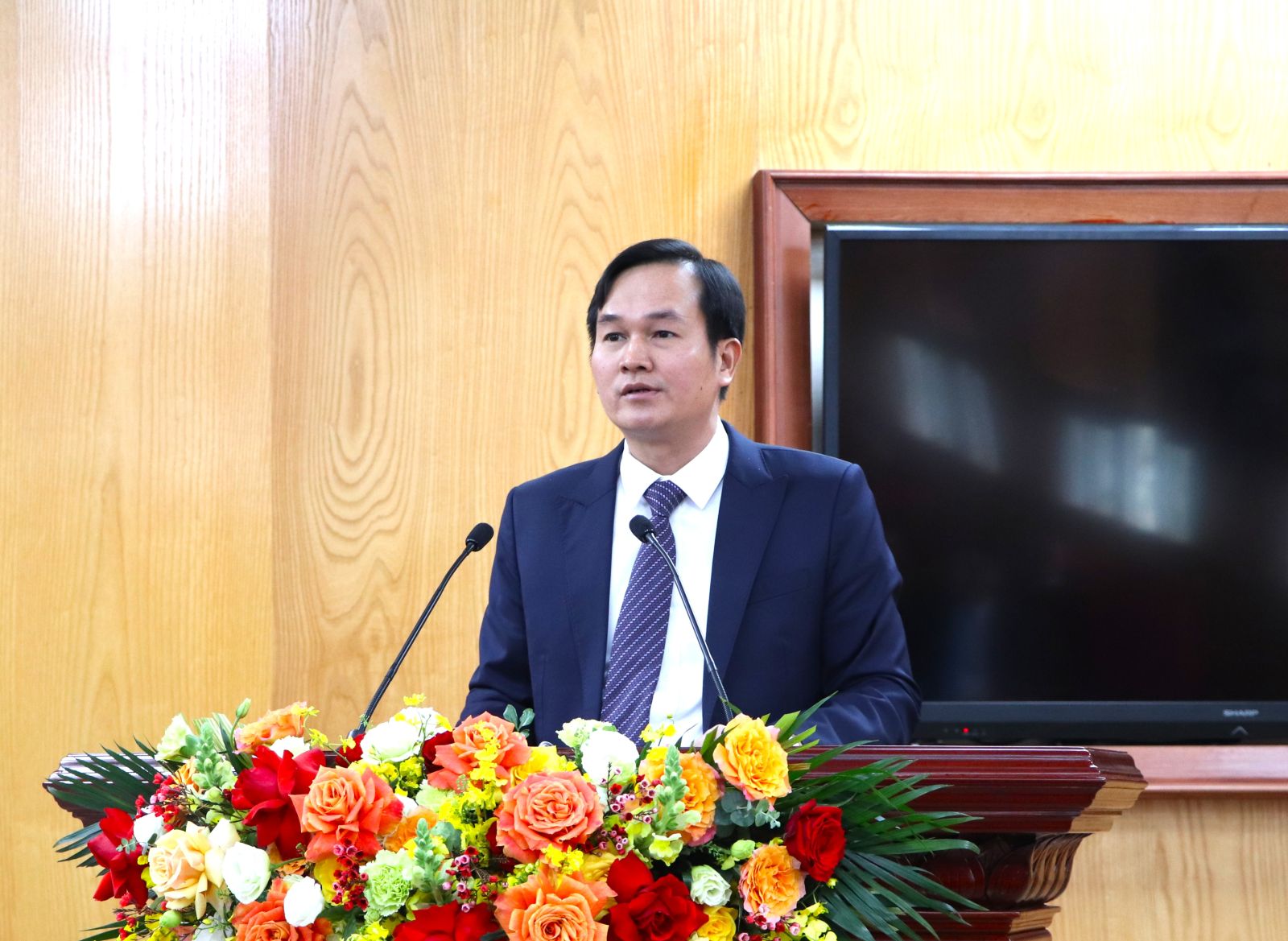 Tại Hội nghị công bố, các đồng chí lãnh đạo tỉnh Lai Châu, Điện Biên đã tặng hoa chúc mừng đồng chí tân Phó Bí thư Tỉnh ủy Lai Châu Hà Quang Trung.