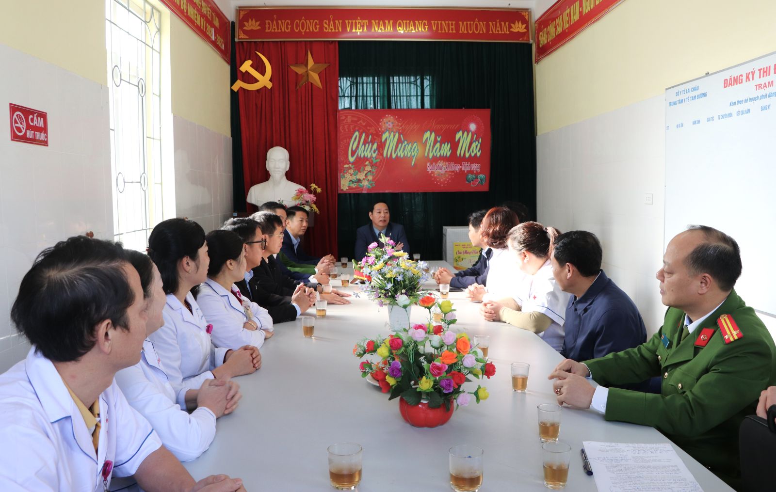 Chủ tịch UBND tỉnh và Đoàn công tác đã đến thăm, tặng quà cán bộ, y bác sĩ tại Trạm Y tế xã Bình Lư - đơn vị làm nhiệm vụ trực, phục vụ Nhân dân trong dịp Tết.