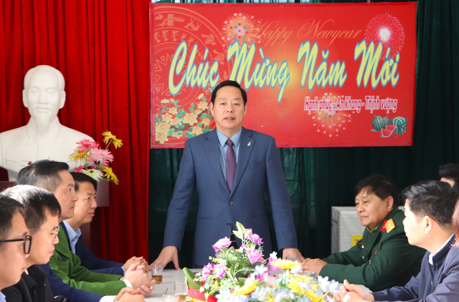 Qua nghe báo cáo nhanh, đồng chí Chủ tịch UBND tỉnh Hà Quang Trung ghi nhận, biểu dương tinh thần trách nhiệm của đội ngũ y tế cơ sở, đồng thời mong muốn cán bộ, nhân viên Trạm Y tế xã Bình Lư tiếp tục nêu cao tinh thần trách nhiệm, thực hiện tốt công tác chăm sóc, bảo vệ sức khỏe Nhân dân, bảo đảm công tác khám, chữa bệnh, trực cấp cứu thông suốt trong những ngày Tết.