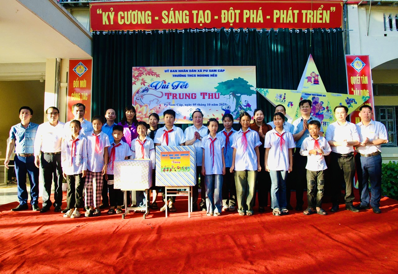 Ngay sau buổi kiểm tra, Đoàn công tác đã tới tặng quà trung thu các em học sinh tại Trường Trung học cơ sở Noong Hẻo. Đồng chí Phó Chủ tịch Thường trực UBND tỉnh chúc các em đón trung thu ấm áp, vui vẻ, chăm ngoan học tập trở thành con ngoan, trò giỏi, đội viên chăm…