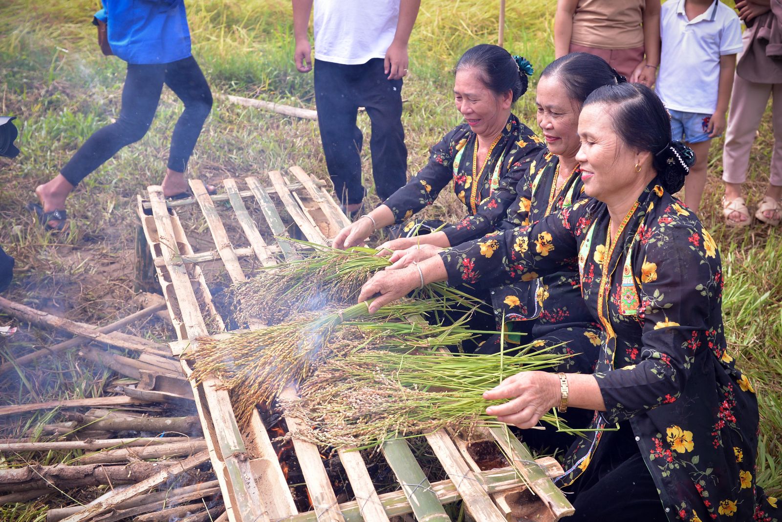 Những khoanh ruộng nếp đẹp nhất được các cô gái Thái cắt cườm mang về dâng cúng và làm cốm mới
