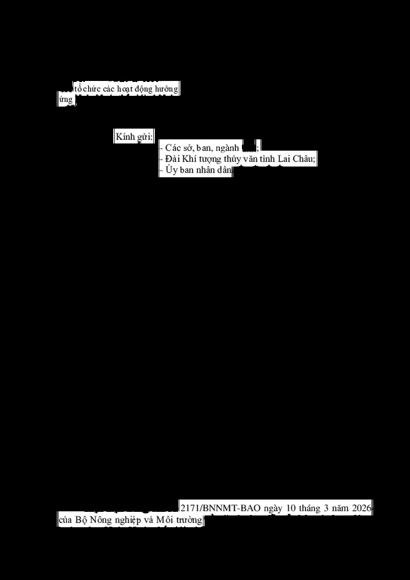 | Tiêu đề văn bản | Công văn V/v tổ chức các hoạt động hưởng ứng Ngày Nước thế giới và Ngày Khí tượng thế giới năm 2026 | ||