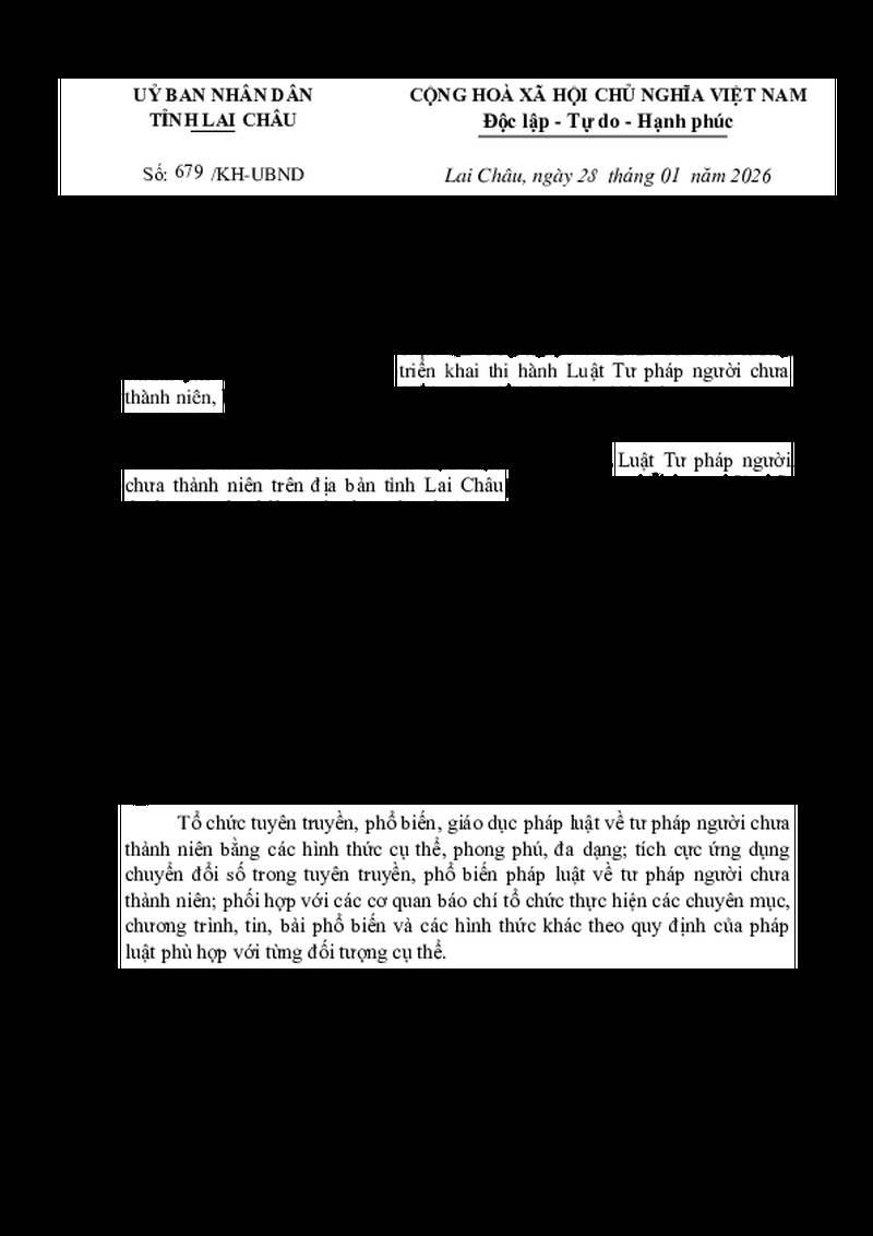 | Số hiệu | 679/KH-UBND | Cơ quan ban hành | UBND tỉnh Lai Châu |