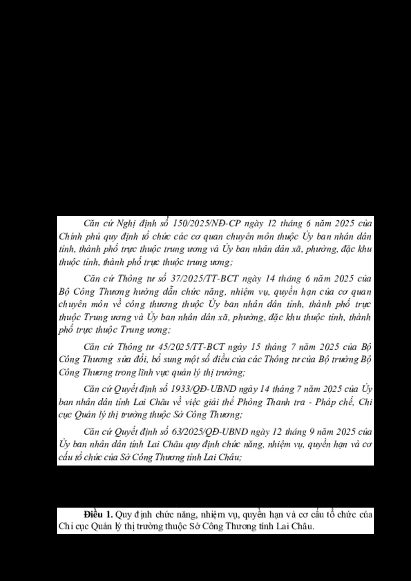 | Tiêu đề văn bản | Quyết định Quy định chức năng, nhiệm vụ, quyền hạn và cơ cấu tổ chức của Chi cục Quản lý thị trường thuộc Sở Công Thương tỉnh Lai Châu | ||