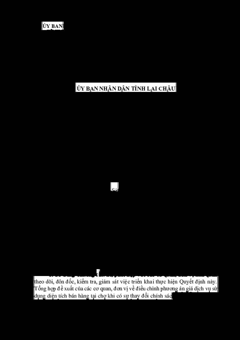 | Tiêu đề văn bản | Quyết định Về việc ban hành giá dịch vụ sử dụng diện tích bán hàng tại chợ được đầu tư từ nguồn vốn nhà nước | ||