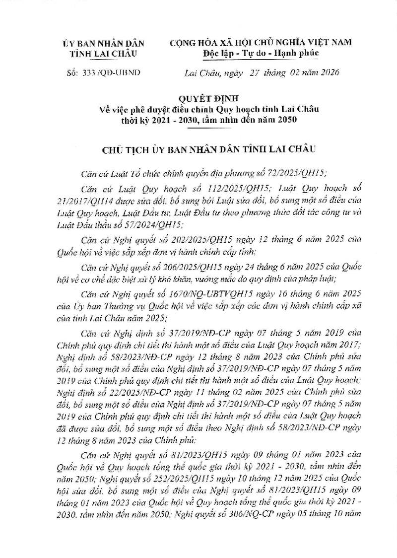 | Số hiệu | 333/QĐ-UBND | Cơ quan ban hành | UBND tỉnh Lai Châu |