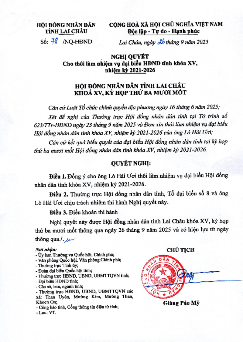 Loại tài liệu | Nghị quyết | Người ký | Giàng Páo Mỷ |