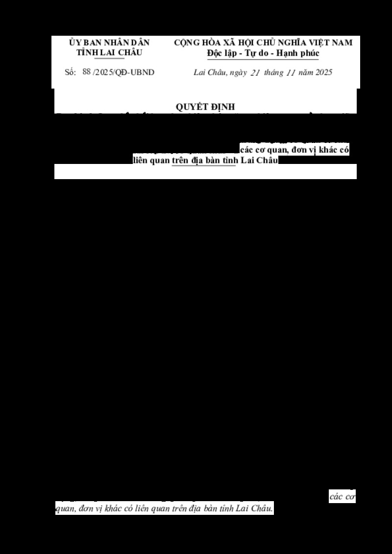| Số hiệu | 88/2025/QĐ-UBND | Cơ quan ban hành | UBND tỉnh Lai Châu |