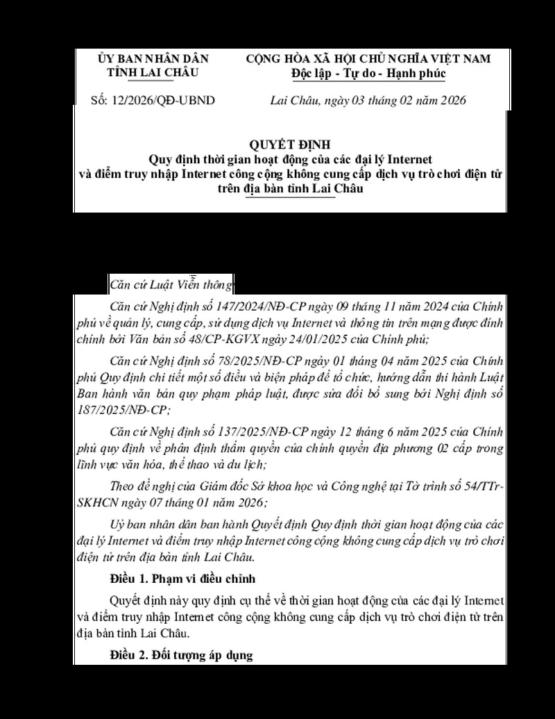 | Số hiệu | 12/2026/QĐ-UBND | Cơ quan ban hành | UBND tỉnh Lai Châu |