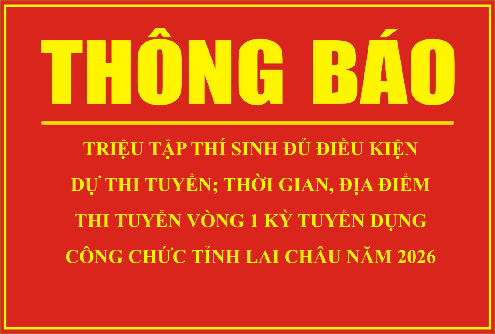 Thông báo Triệu tập thí sinh đủ điều kiện dự thi tuyển; thời gian, địa điểm thi tuyển vòng 1 kỳ tuyển dụng công chức tỉnh Lai Châu năm 2026