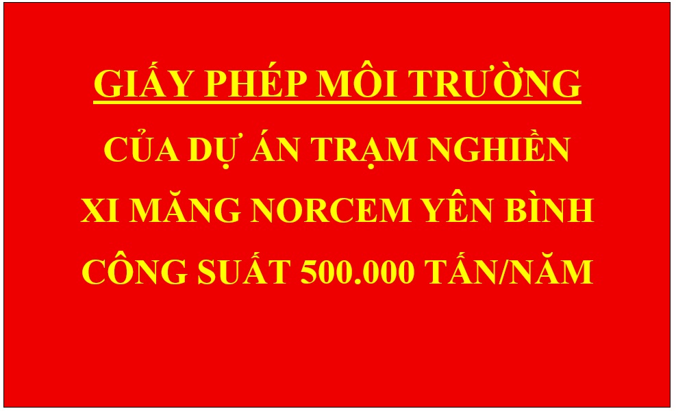 Giấy phép môi trường của dự án Trạm nghiền xi măng Norcem Yên Bình công suất 500.000 tấn/năm