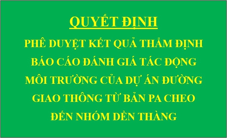 Quyết định Phê duyệt kết quả thẩm định báo cáo đánh giá tác động môi trường của Dự án Đường giao thông từ bản Pa Cheo đến nhóm Dền Thàng