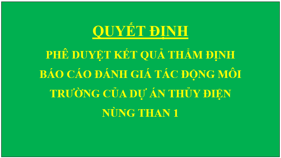 Quyết định Phê duyệt kết quả thẩm định báo cáo đánh giá tác động môi trường của Dự án Thủy điện Nùng Than 1