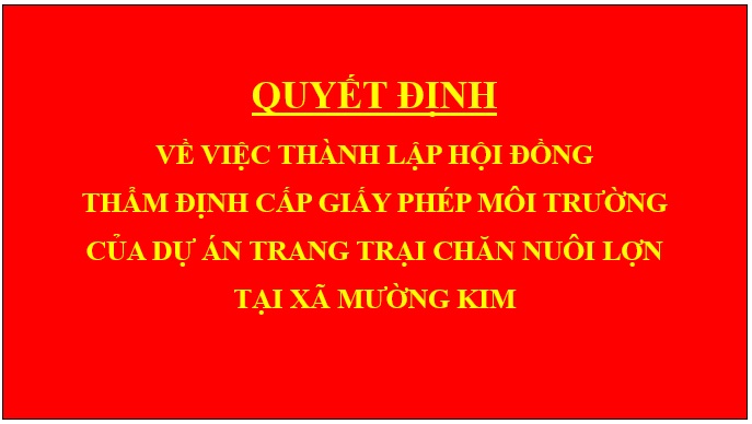 Quyết định về việc thành lập Hội đồng thẩm định cấp giấy phép môi trường của dự án Trang trại chăn nuôi lợn tại xã Mường Kim