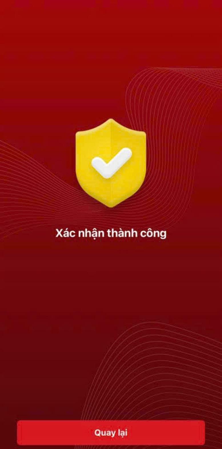 Màn hình sau khi xác nhận thông tin