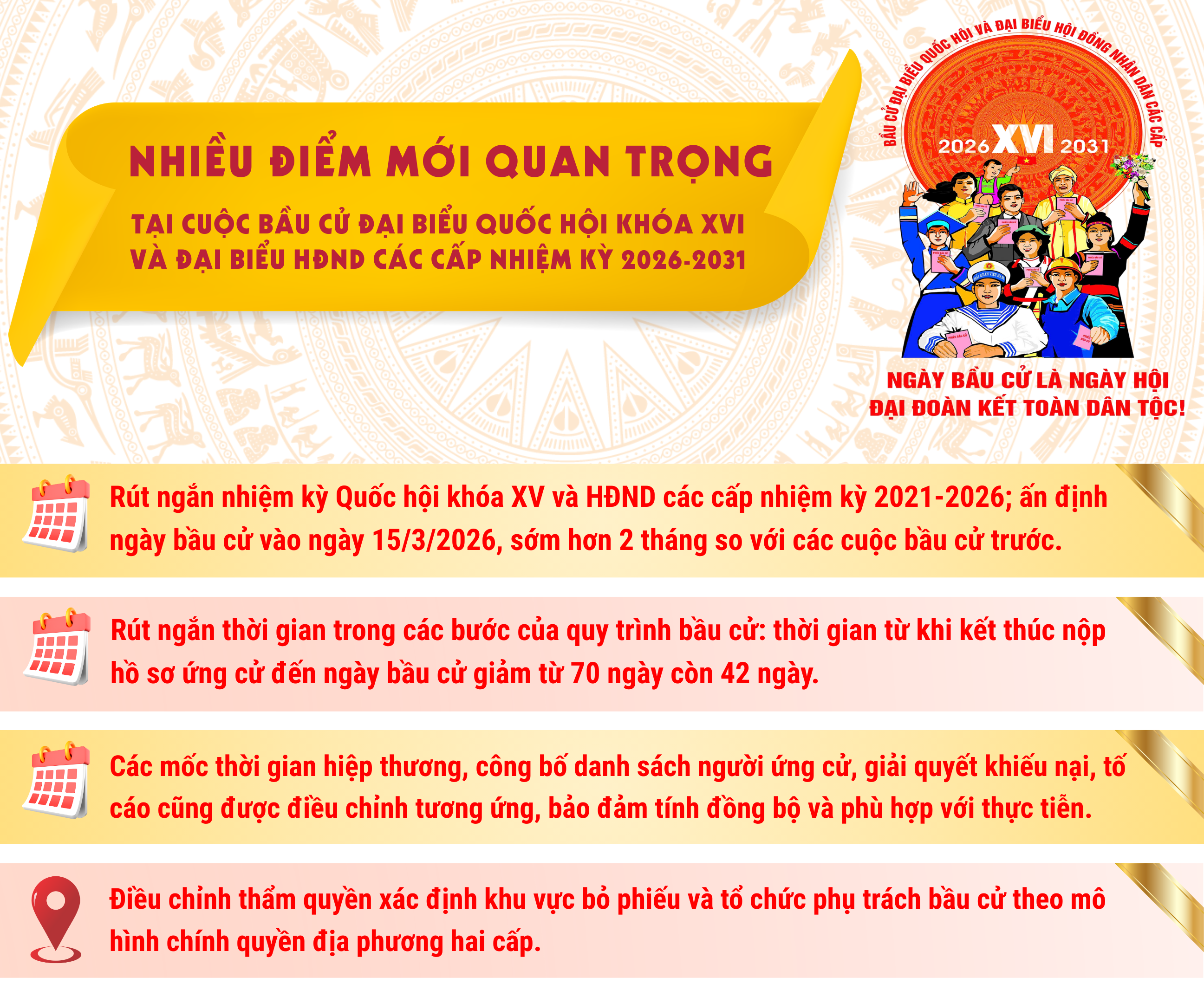 Nhiều điểm mới quan trọng tại cuộc bầu cử đại biểu Quốc hội khóa XVI và đại biểu HĐND các cấp nhiệm kỳ 2026 - 2031