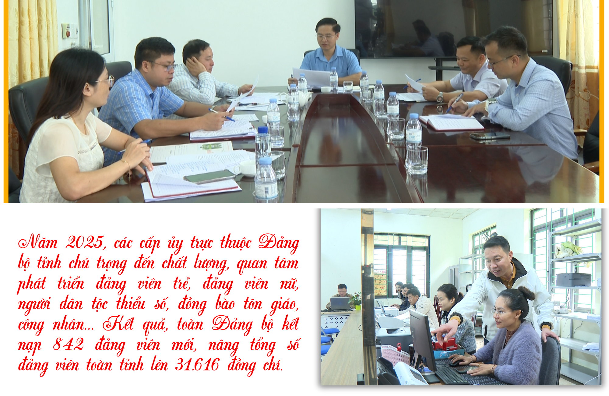 Năm 2025, các cấp ủy trực thuộc Đảng bộ tỉnh chú trọng đến chất lượng, quan tâm phát triển đảng viên trẻ, đảng viên nữ, người dân tộc thiểu số (DTTS), đồng bào tôn giáo, công nhân… Kết quả, toàn Đảng bộ kết nạp 842 đảng viên mới, nâng tổng số đảng viên toàn tỉnh lên 31.616 đồng chí (trong đó, đảng viên dự bị 950 đồng chí, đảng viên nữ 11.180 đồng chí, đảng viên là người dân tộc thiểu số 17.735 đồng chí).