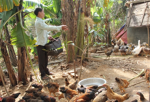 ![]() Anh Lò Văn Sương, bản Chít 1, xã Phúc Than chăm sóc đàn gia cầm |