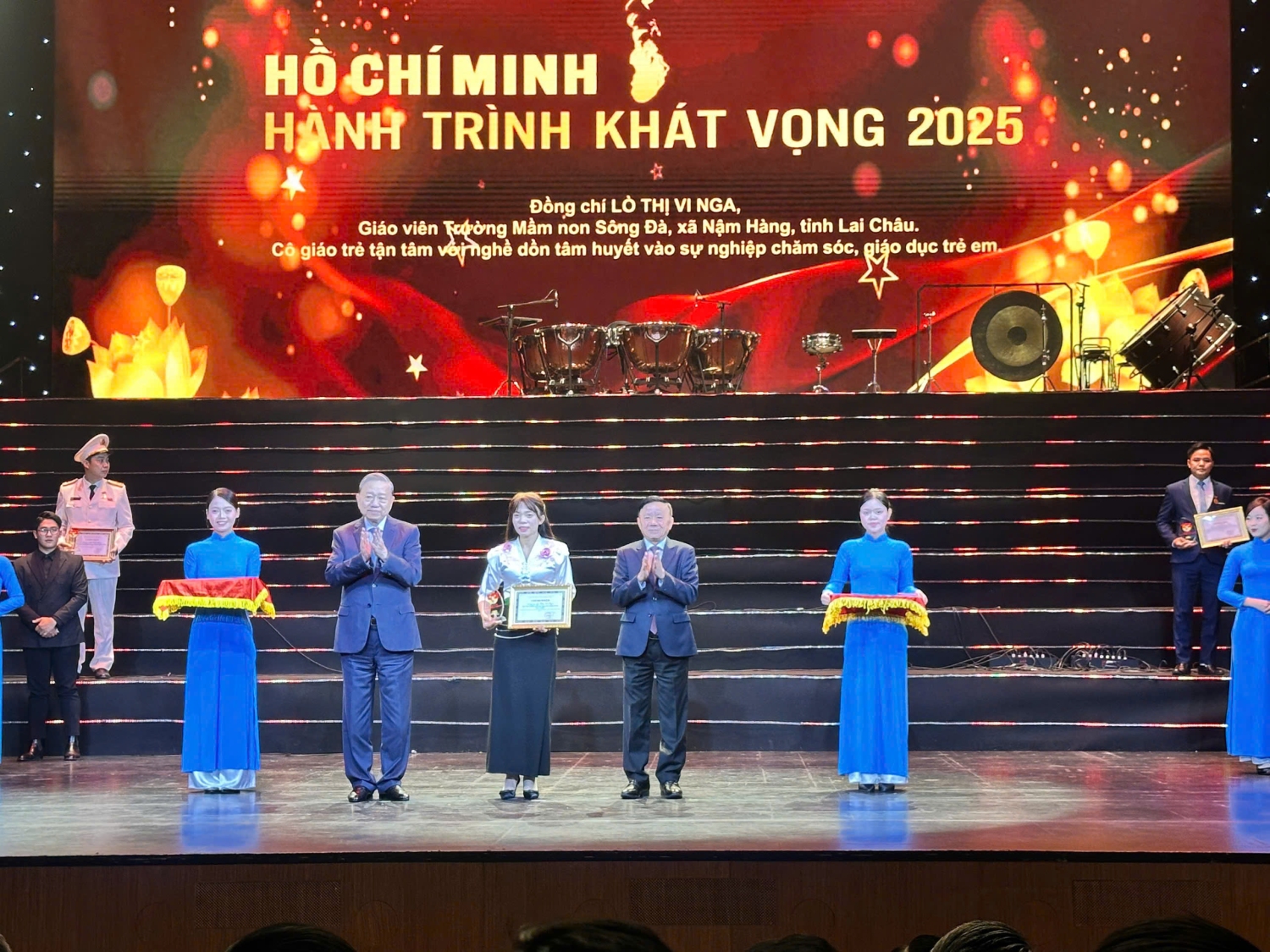 Tại Chương trình, Tổng Bí thư Tô Lâm đã trao Giấy chứng nhận và Thường trực Ban Bí thư Trần Cẩm Tú đã trao Biểu trưng cho các cá nhân, đại diện tập thể điển hình tiêu biểu toàn quốc. Lai Châu vinh dự có đồng chí Lò Thị Vi Nga, Giáo viên Trường mầm non Sông Đà, xã Nậm Hàng là điển hình tiêu biểu được tôn vinh tại Chương trình./.
