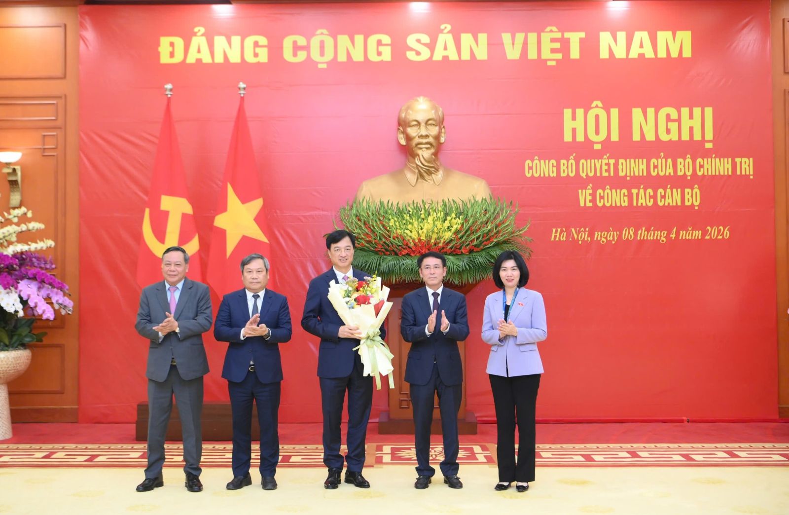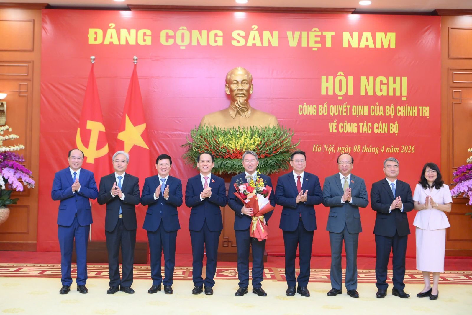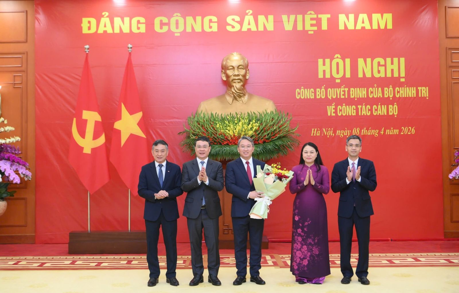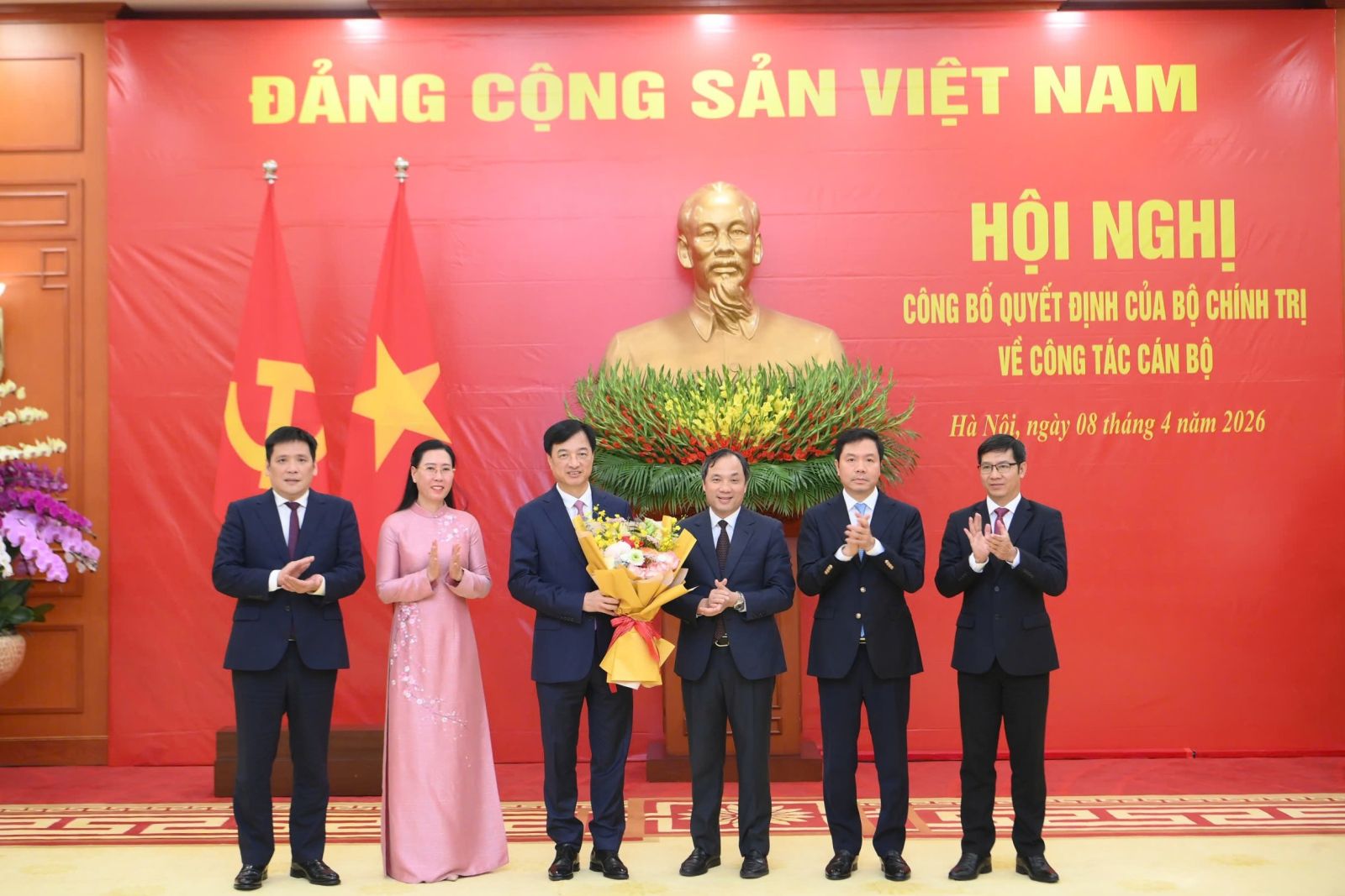 Tổng Bí thư, Chủ tịch nước Tô Lâm; Thủ tướng Chính phủ Lê Minh Hưng, Chủ tịch Quốc hội Trần Thanh Mẫn, đồng chí Thường trực Ban Bí thư Trần Cẩm Tú và các đồng chí Bộ Chính trị chúc mừng 2 đồng chí nhận nhiệm vụ mới.