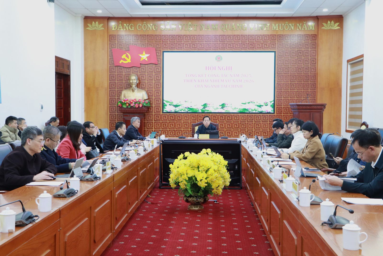 Phát biểu chỉ đạo tại Hội nghị, Thủ tướng Chính phủ Phạm Minh Chính đã ghi nhận, biểu dương nỗ lực của toàn ngành Tài chính trong năm 2025. Đồng thời đề nghị ngành Tài chính tiếp tục đoàn kết, nắm chắc tình hình diễn biến, triển khai thực hiện tốt một số nhiệm vụ, trong đó ưu tiên cho thúc đẩy tăng trưởng trên cơ sở ổn định kinh tế vĩ mô, kiểm soát lạm phát, bảo đảm các cân đối lớn. Xây dựng, điều hành chính sách tài khóa chủ động, linh hoạt, có trọng tâm, trọng điểm; đảm bảo nguồn lực thực hiện mục tiêu tăng trưởng kinh tế hai con số, chủ trương của Đảng, Nhà nước, các Nghị quyết trụ cột của Bộ Chính trị, Nghị quyết Đại hội toàn quốc lần thứ XIV của Đảng; thúc đẩy tăng trưởng kinh tế nhanh, bền vững. Đồng thời, tăng cường kỷ luật, kỷ cương, đẩy mạnh cải cách hành chính, hiện đại hóa gắn với việc tinh gọn, hiệu năng, hiệu lực, hiệu quả quản lý tài chính Nhà nước; duy trì an ninh, an toàn nền tài chính quốc gia…