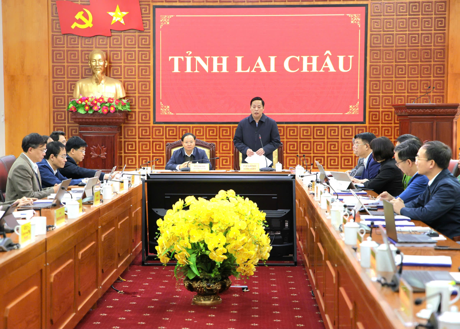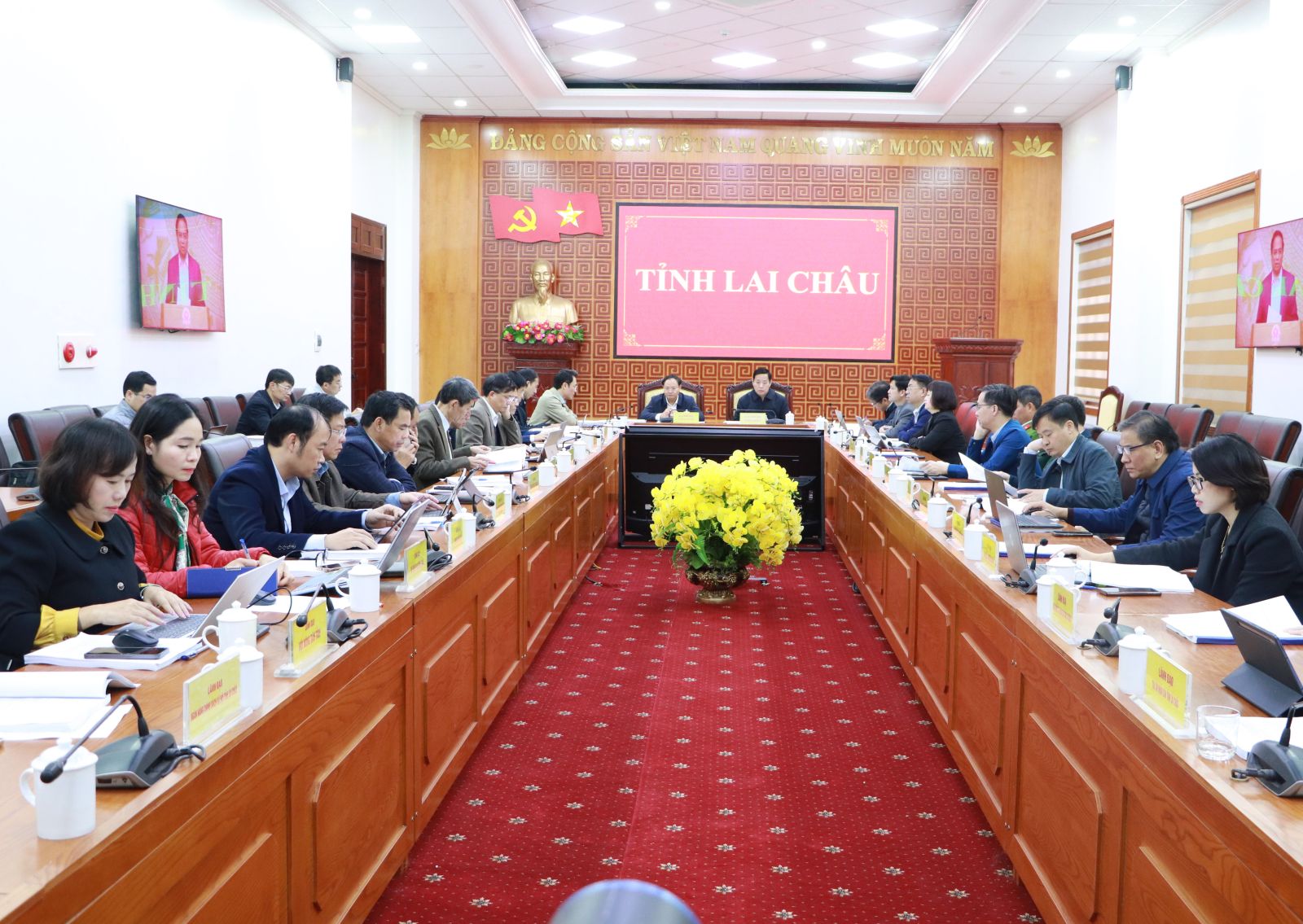 Dự Hội nghị tại điểm cầu tỉnh Lai Châu có các đồng chí: Lê Minh Ngân - Bí thư Tỉnh ủy; Hà Quang Trung - Phó Bí thư Tỉnh ủy, Chủ tịch UBND tỉnh; Hà Trọng Hải - Phó Chủ tịch UBND tỉnh; đại diện lãnh đạo Ủy ban Mặt trận Tổ quốc Việt Nam tỉnh, các sở, ban ngành tỉnh; đại diện các Ban của HĐND tỉnh, Công an tỉnh, Bộ Chỉ huy Quân sự tỉnh, Chi nhánh Ngân hàng Chính sách xã hội tỉnh...
