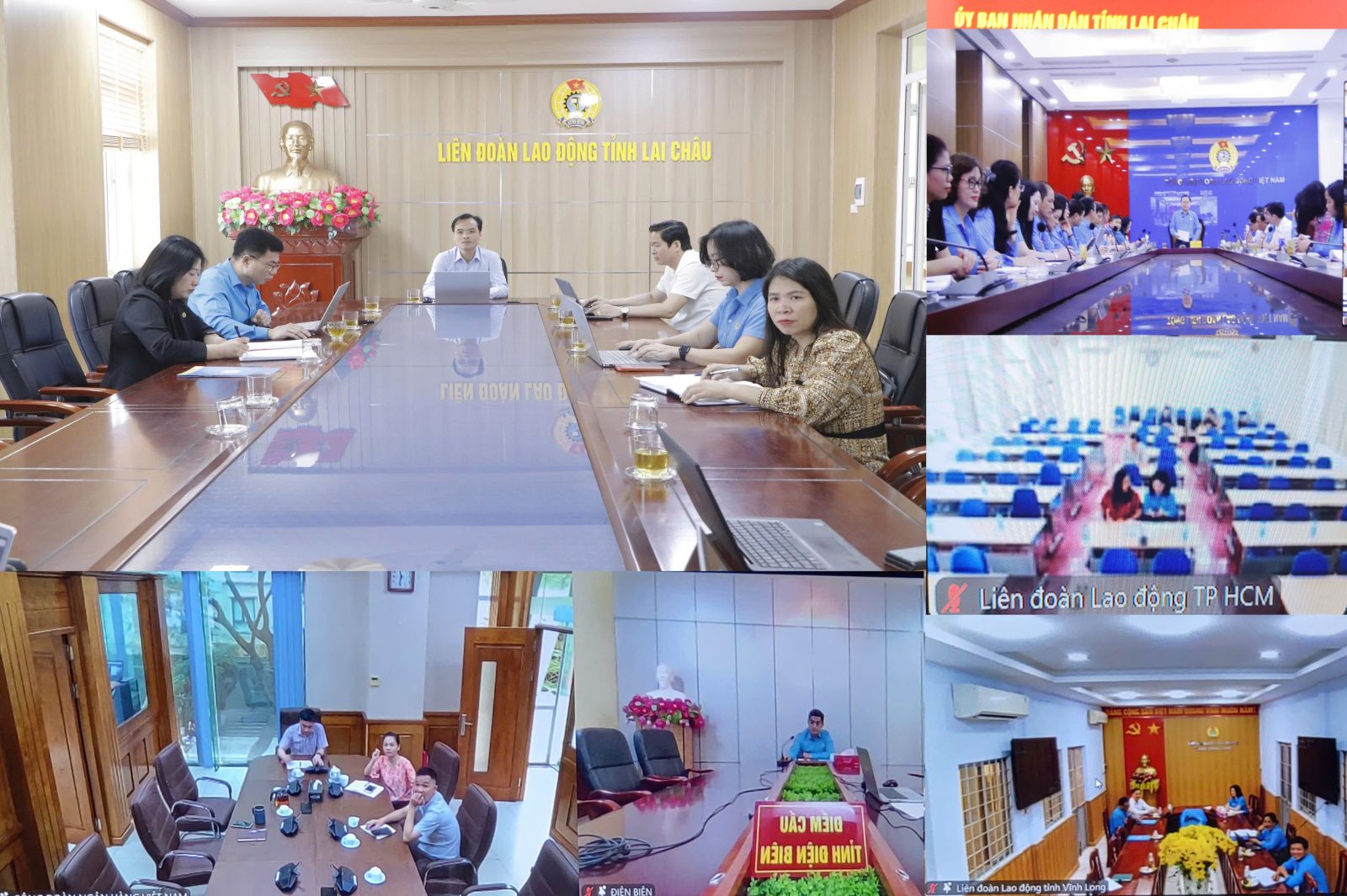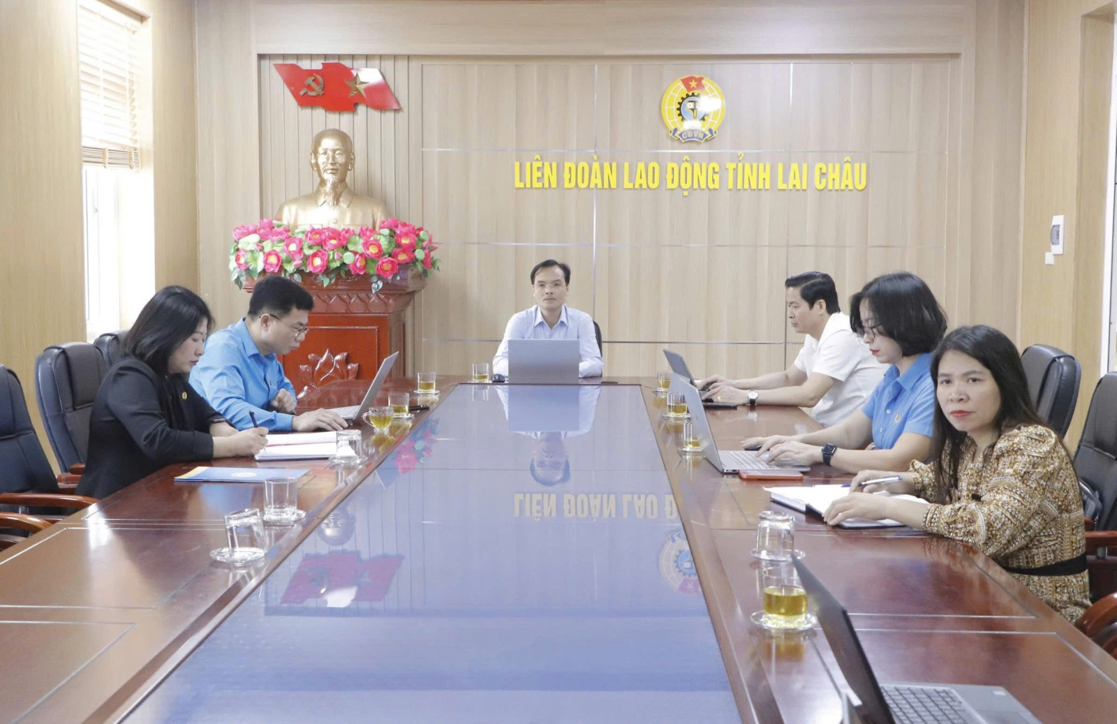 Dự Hội nghị tại điểm cầu Liên đoàn Lao động tỉnh Lai Châu có các đồng chí: Nguyễn Đình Toán - Phó Trưởng Ban Tuyên giáo và Dân vận Tỉnh ủy; Phạm Ngọc Đang - Phó Chủ tịch Liên đoàn Lao động tỉnh; đại diện lãnh đạo và chuyên viên Ban Công tác Công đoàn tham mưu công tác tuyên giáo, chính sách pháp luật và quan hệ lao động…