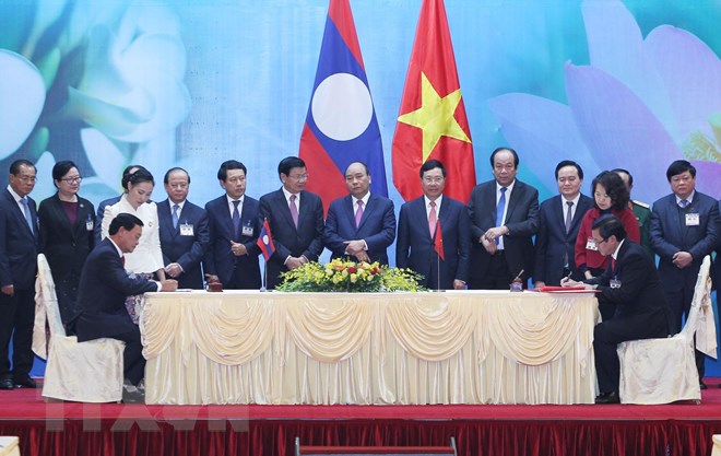 ![]() Thủ tướng Nguyễn Xuân Phúc và Thủ tướng Lào Thoongloun Sisoulith chứng kiến Lễ ký các văn bản hợp tác Việt Nam-Lào. (Ảnh: Lâm Khánh/TTXVN) |