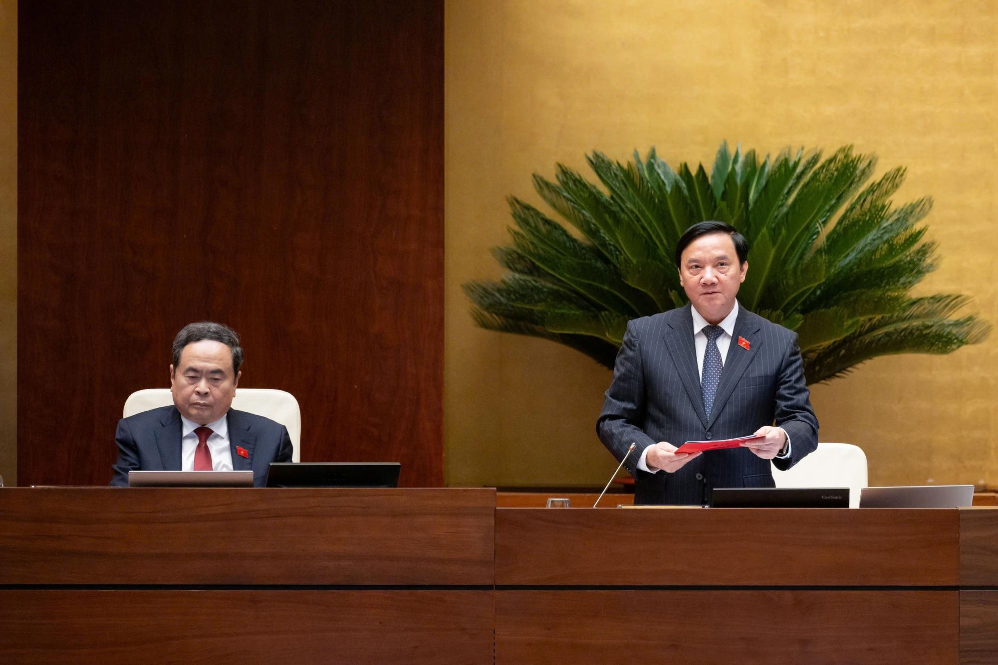 Trước khi tiến hành biểu quyết thông qua, các đại biểu nghe Bộ trưởng Bộ Tư pháp Hoàng Thanh Tùng trình bày Báo cáo tóm tắt tiếp thu, giải trình, chỉnh lý dự thảo Luật.