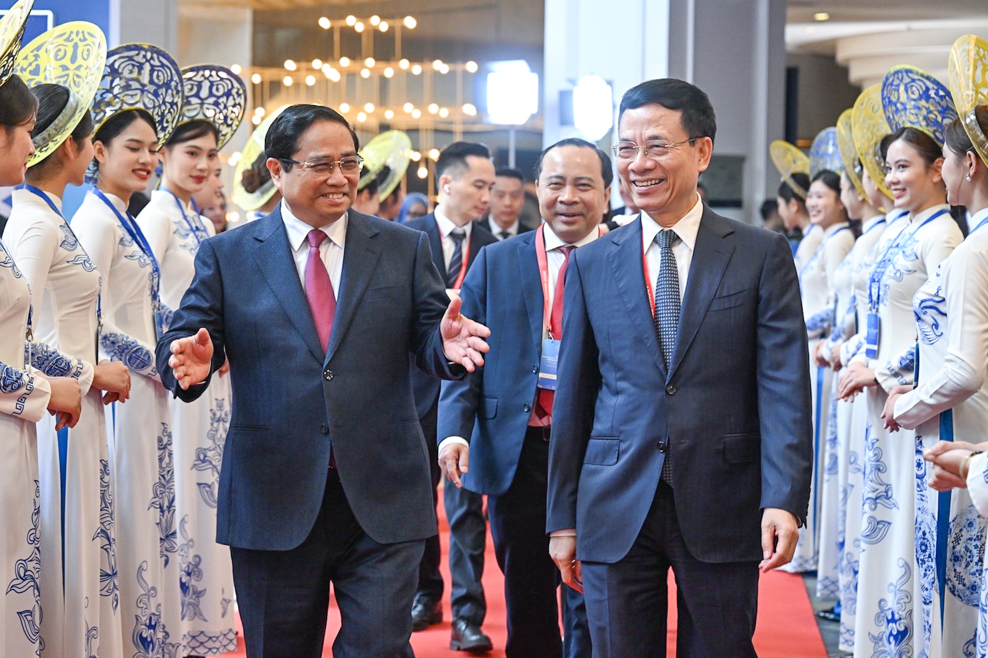 Thủ tướng cho rằng, nhân loại đang sống trong kỷ nguyên số, kỷ nguyên của sự bùng nổ công nghệ chưa từng có, nhất là sự phát triển mạnh của trí tuệ nhân tạo, dữ liệu lớn, Internet vạn vật, chuỗi khối… Những thành tựu đó đã làm thay đổi căn bản phương thức sản xuất kinh doanh và quản trị xã hội, mở ra cơ hội cho các quốc gia vươn lên mạnh mẽ. Chuyển đổi số không chỉ là xu thế tất yếu, yêu cầu khách quan mà còn là lựa chọn chiến lược và ưu tiên hàng đầu của các quốc gia để phát triển nhanh và bền vững trong thời đại mới.