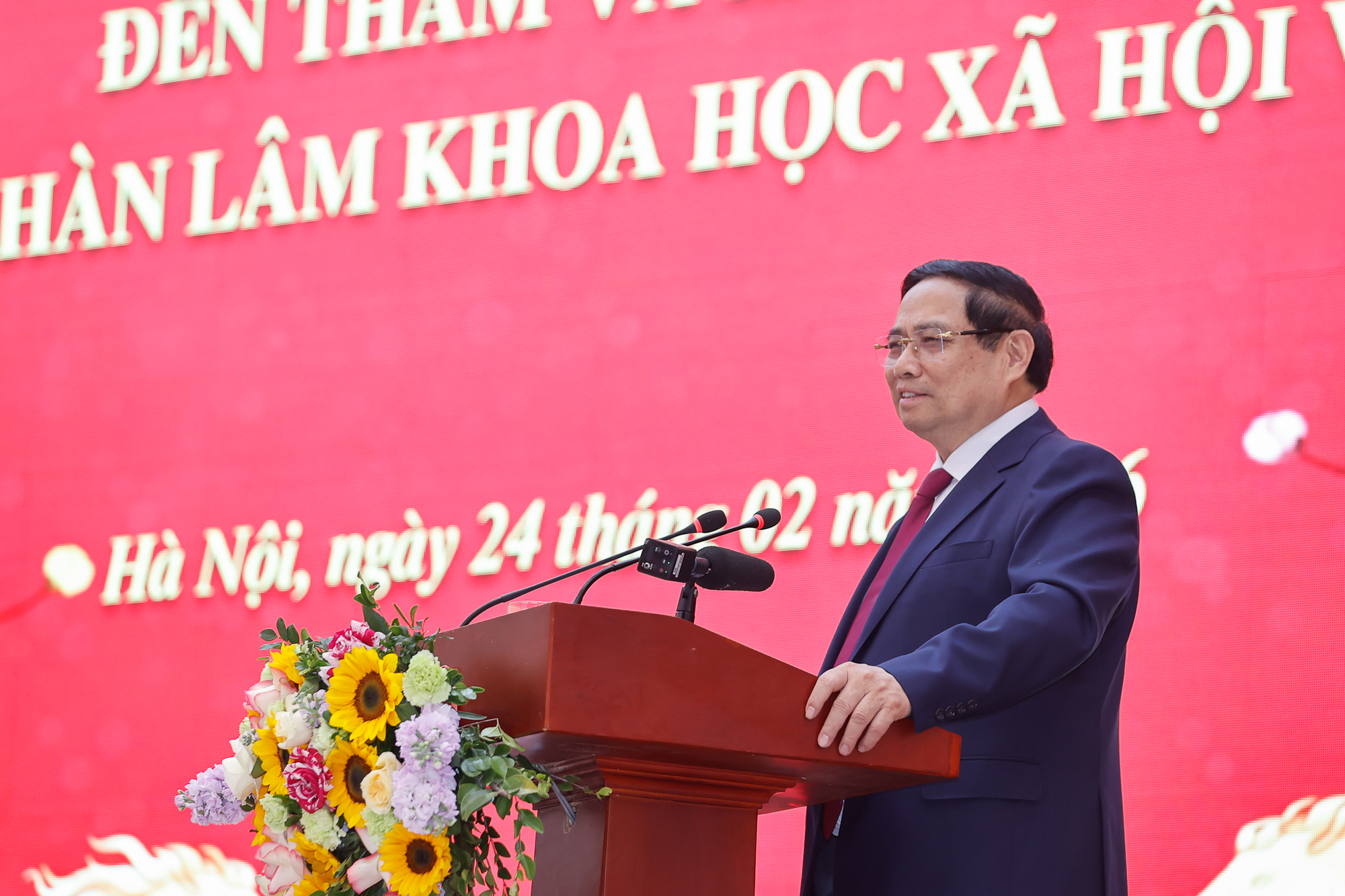 Thủ tướng Phạm Minh Chính khẳng định Viện Hàn lâm Khoa học xã hội Việt Nam là trung tâm nghiên cứu chiến lược hàng đầu của Đảng và Nhà nước về khoa học xã hội, lực lượng nòng cốt nghiên cứu lý luận, tổng kết thực tiễn, cung cấp luận cứ khoa học cho hoạch định đường lối, chính sách phát triển đất nước, đồng thời góp phần quan trọng gìn giữ và phát huy các giá trị văn hóa, con người và trí tuệ Việt Nam.