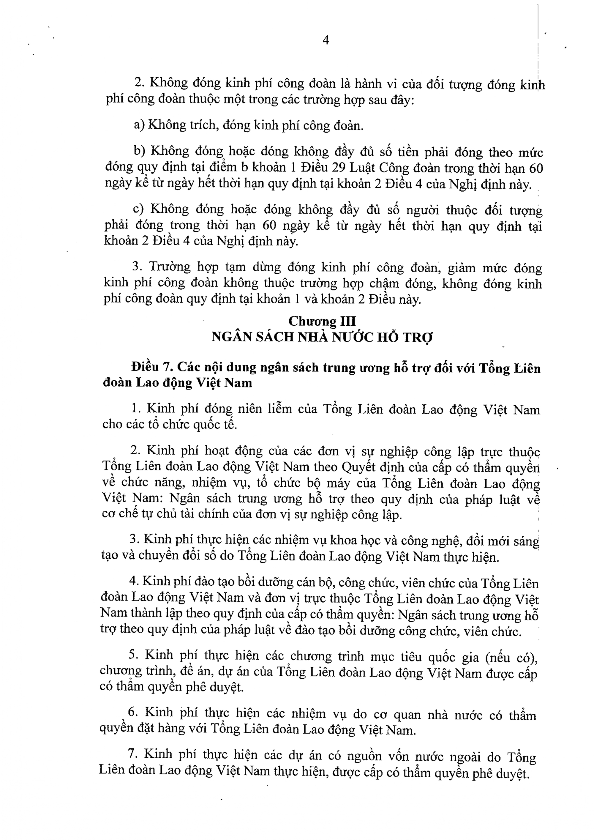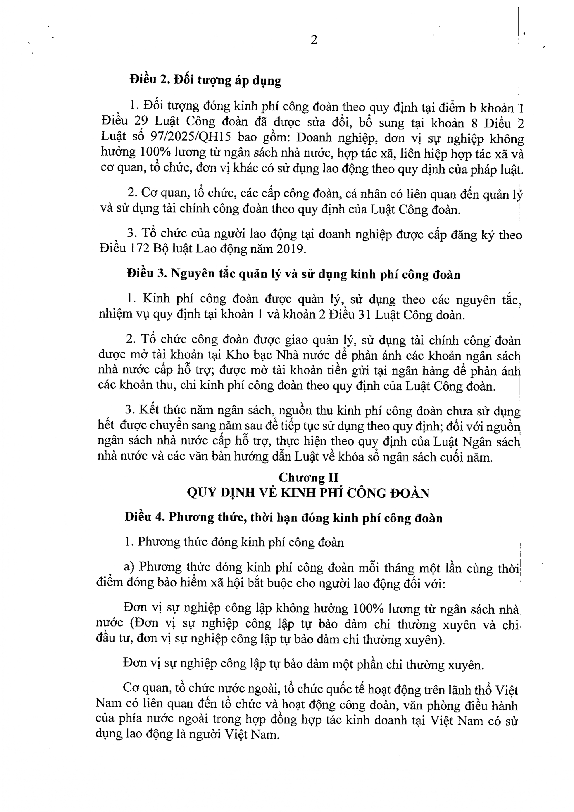 a) Phương thức, thời hạn và nguồn đóng kinh phí công đoàn, trường hợp không đóng hoặc chậm đóng kinh phí công đoàn theo khoản 2 Điều 29 Luật Công đoàn; đơn vị sự nghiệp không hưởng 100% lương từ ngân sách nhà nước; nội dung ngân sách nhà nước cấp hỗ trợ theo quy định tại khoản 2 Điều 29 Luật Công đoàn đã được sửa đổi, bổ sung tại khoản 8 Điều 2 Luật số 97/2025/QH15.