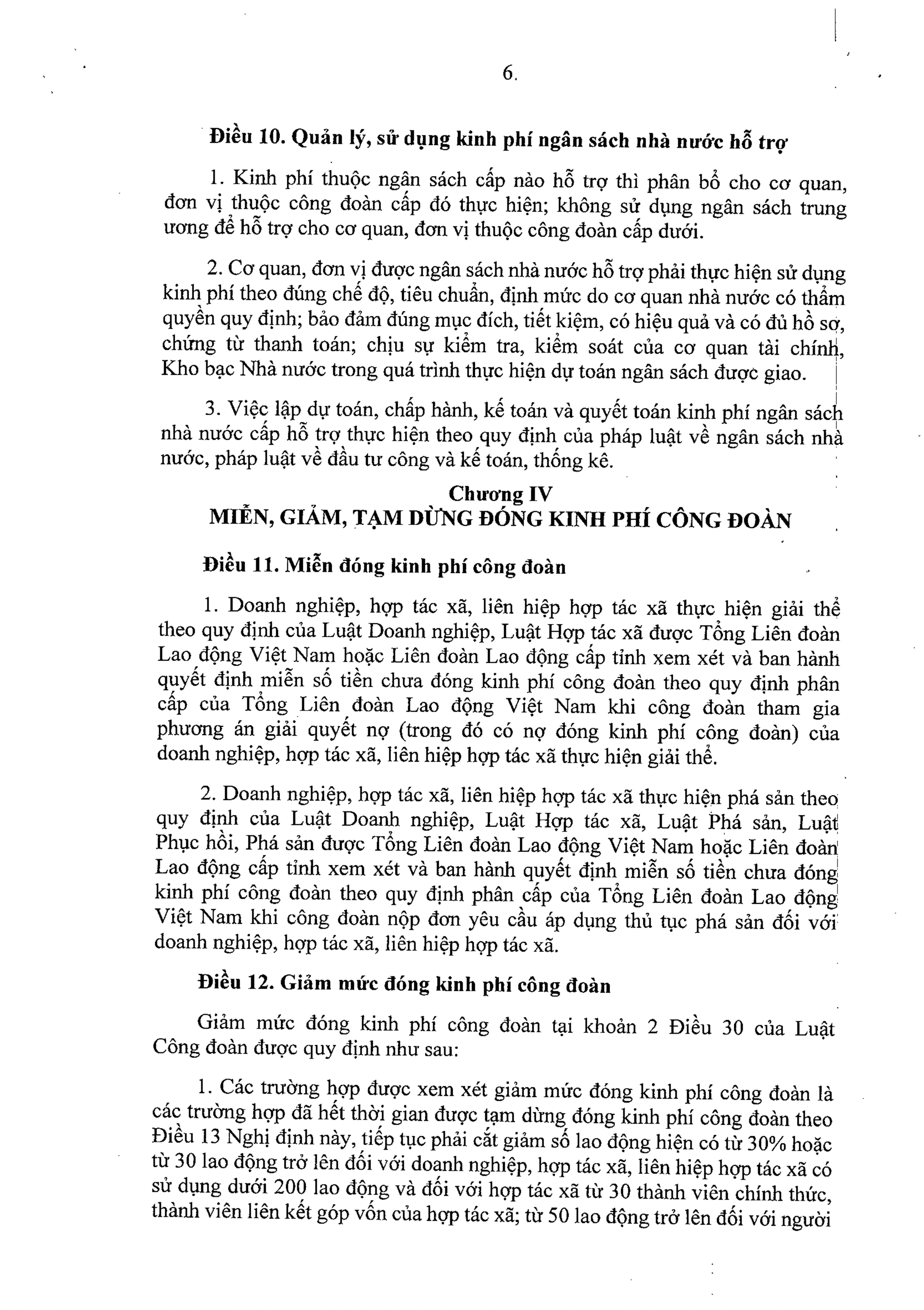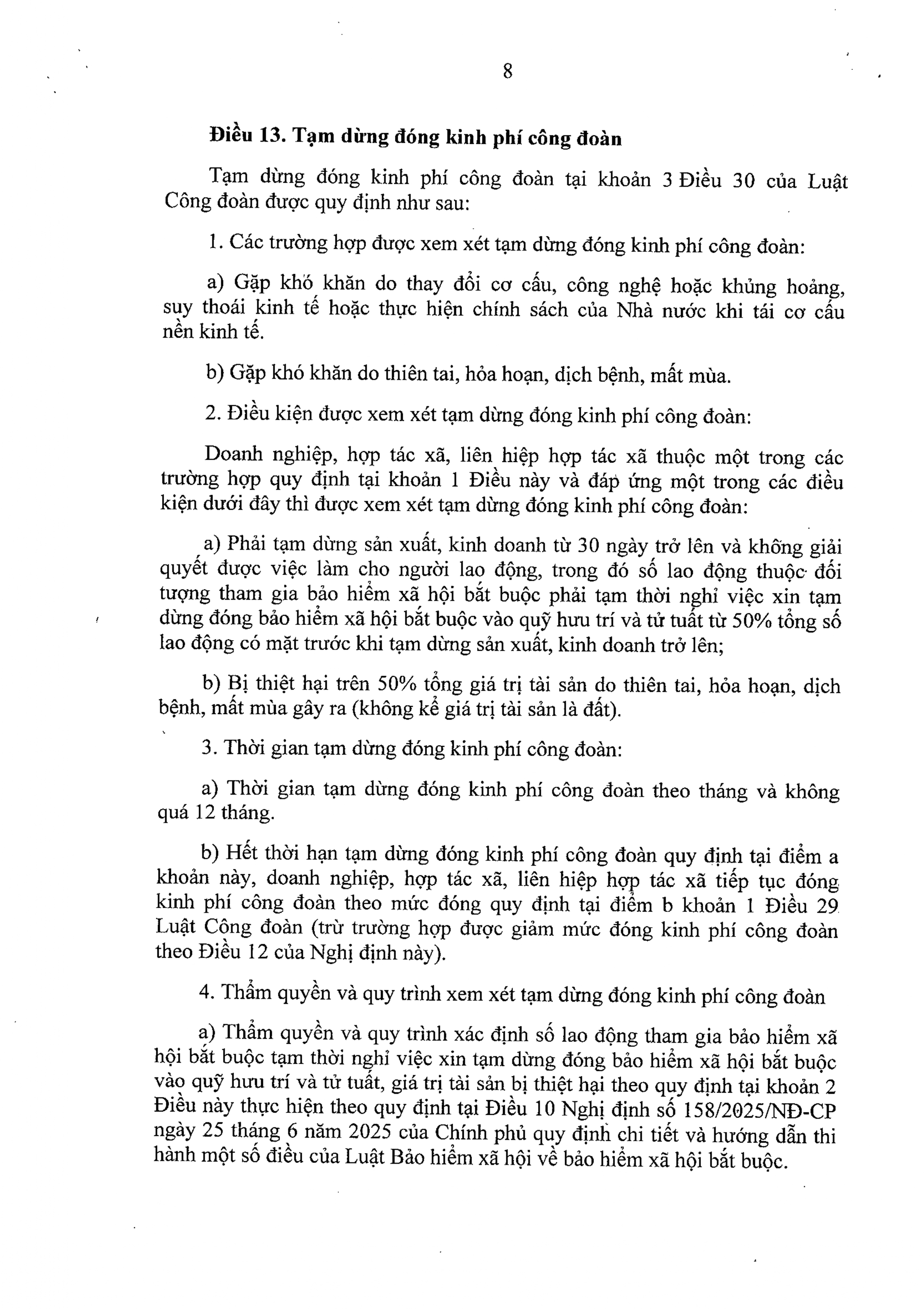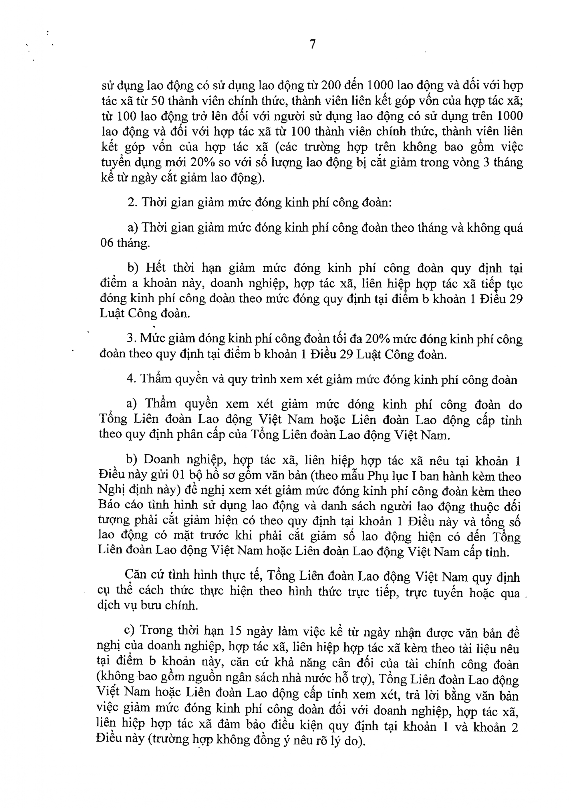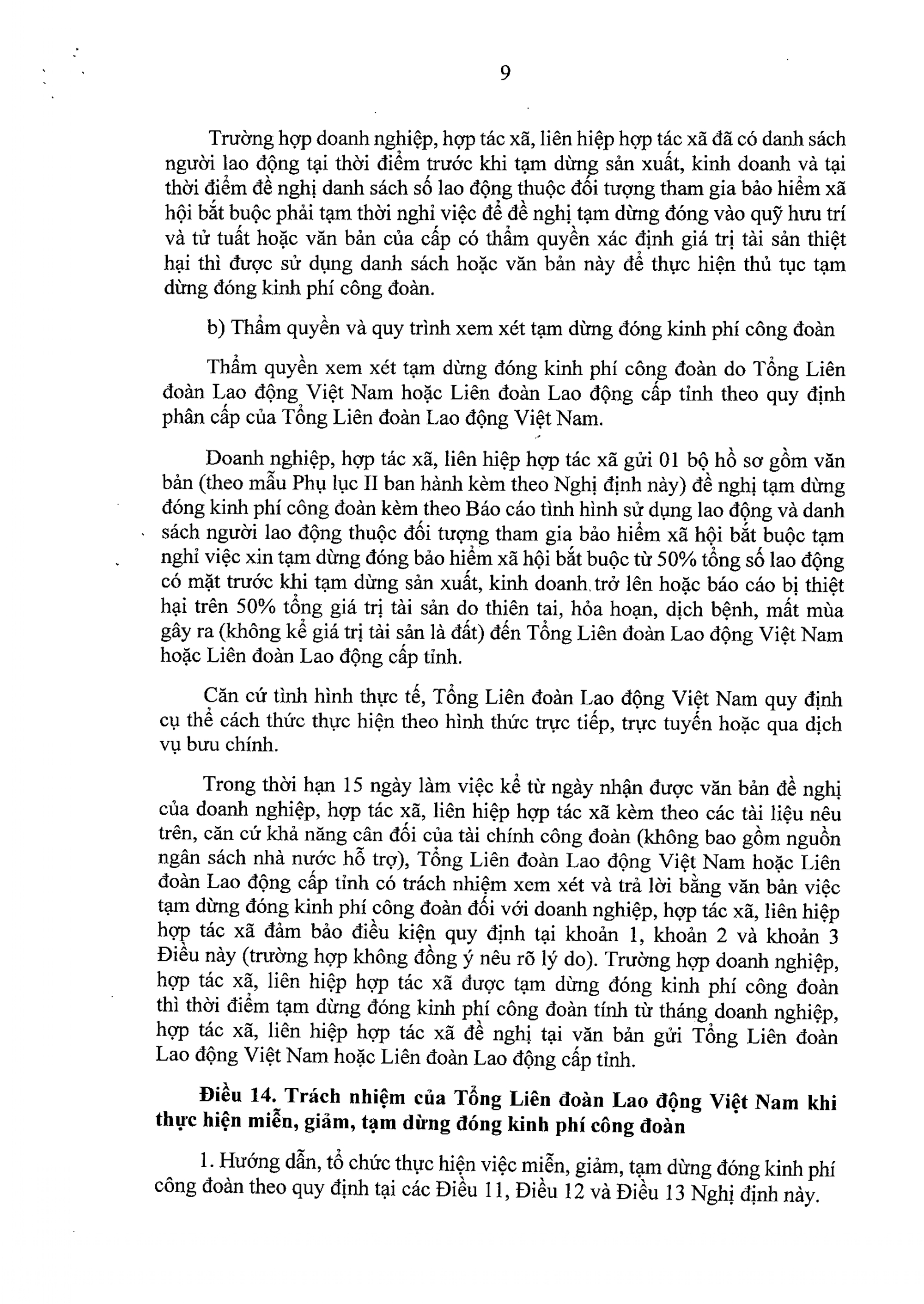 b) Miễn, giảm, tạm dừng đóng kinh phí công đoàn theo quy định tại khoản 4 Điều 30 Luật Công đoàn.