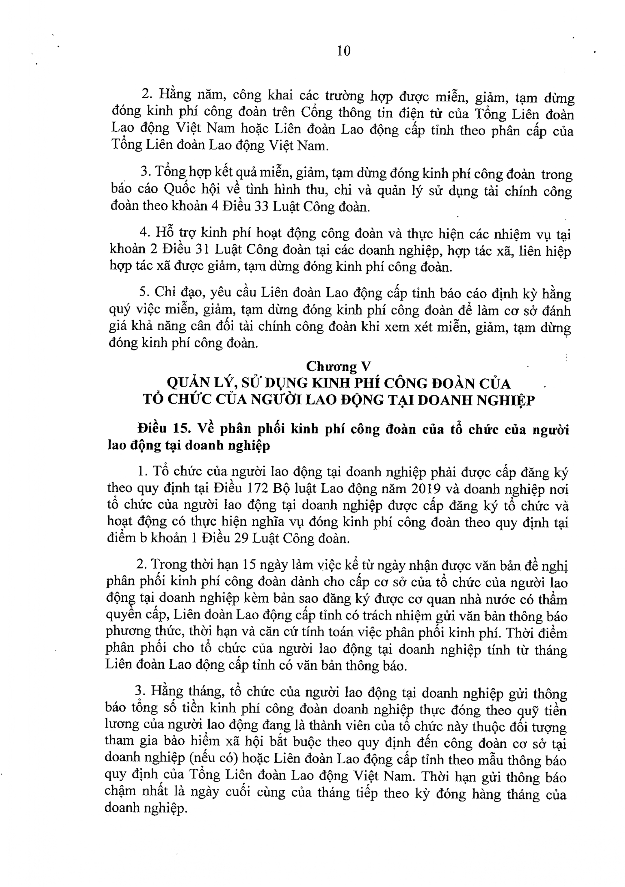 2. Hướng dẫn thi hành việc ban hành tiêu chuẩn, định mức, chế độ chi tiêu và quản lý, sử dụng tài chính công đoàn theo khoản 5 Điều 31 Luật Công đoàn.