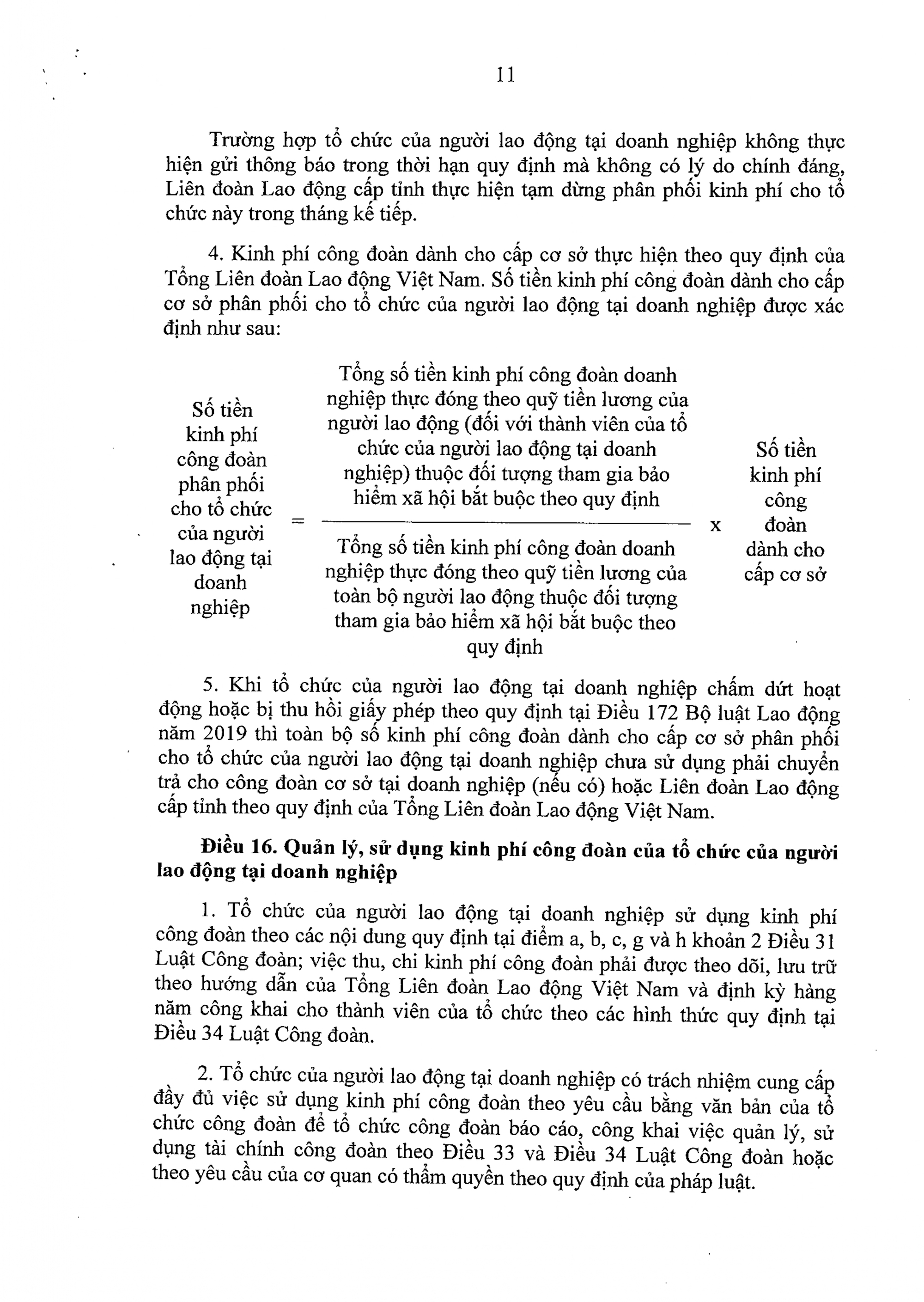 c) Việc quản lý, sử dụng kinh phí công đoàn của tổ chức của người lao động tại doanh nghiệp theo quy định tại khoản 6 Điều 31 Luật Công đoàn.