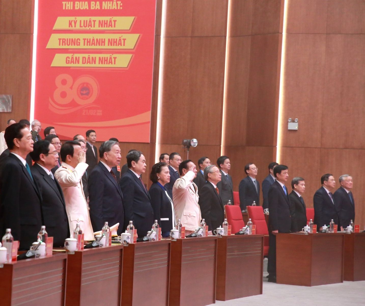 Cùng dự có các đồng chí: Phạm Minh Chính, Ủy viên Bộ Chính trị khóa XIII, Thủ tướng Chính phủ; Nguyễn Tấn Dũng, nguyên Ủy viên Bộ Chính trị, nguyên Thủ tướng Chính phủ; Trần Thanh Mẫn, Ủy viên Bộ Chính trị, Chủ tịch Quốc hội; Nguyễn Thị Kim Ngân, nguyên Ủy viên Bộ Chính trị, nguyên Chủ tịch Quốc hội; các nguyên Ủy viên Bộ Chính trị, nguyên Thường trực Ban Bí thư: Đại tướng Lê Hồng Anh, Trần Quốc Vượng.