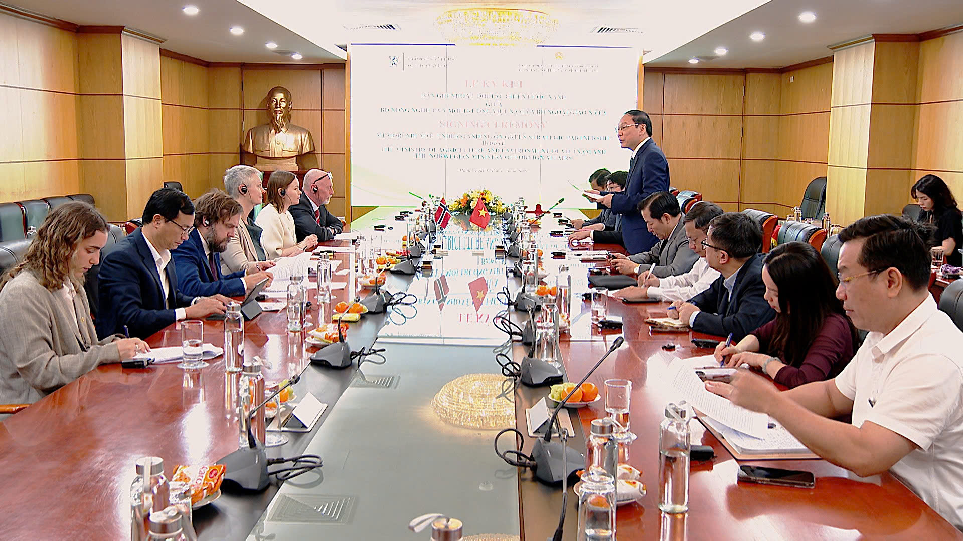 Tại cuộc họp giữa Thứ trưởng Bộ Nông nghiệp và Môi trường và Quốc Vụ khanh Bộ Thương mại, Công nghiệp và Thuỷ sản Na Uy, hai bên đã nhất trí rằng Bản ghi nhớ về Đối tác Chiến lược Xanh tạo ra một nền tảng lâu dài nhằm làm sâu sắc hơn hợp tác giữa Na Uy và Việt Nam trong cả khu vực công và tư.