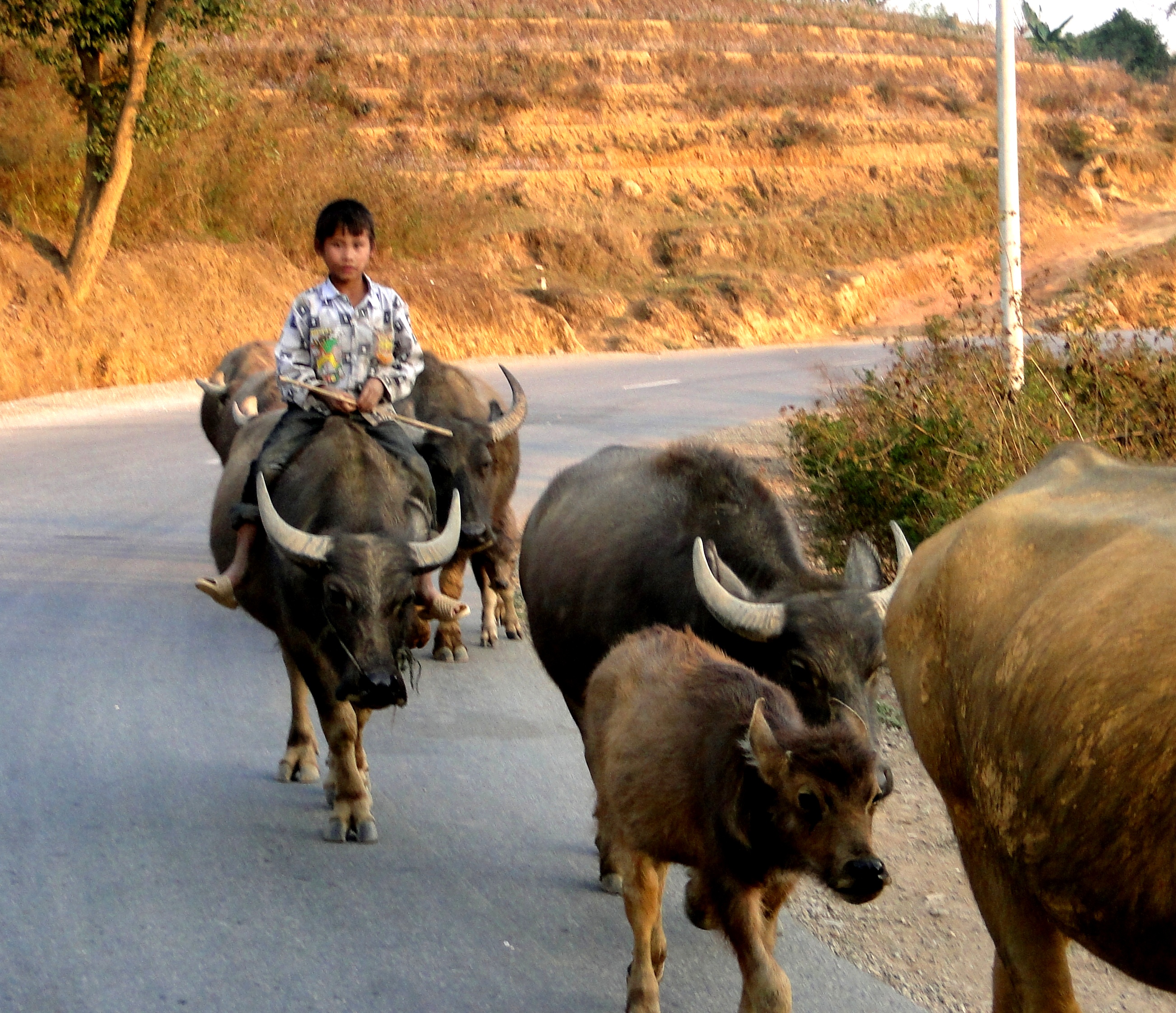 bắt gặp hình ảnh của những em bé cưỡi trâu khi chiều buông xuống...