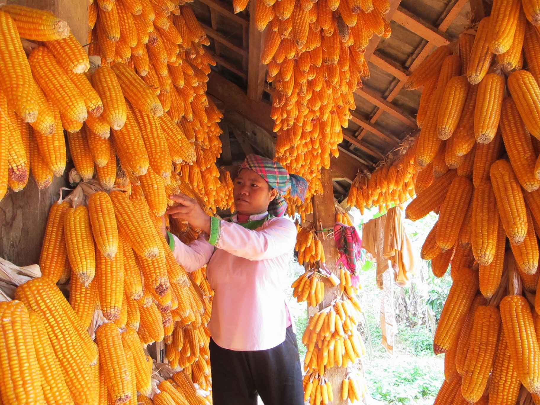 ngôi nhà được trang trí bằng ngô vàng rực...