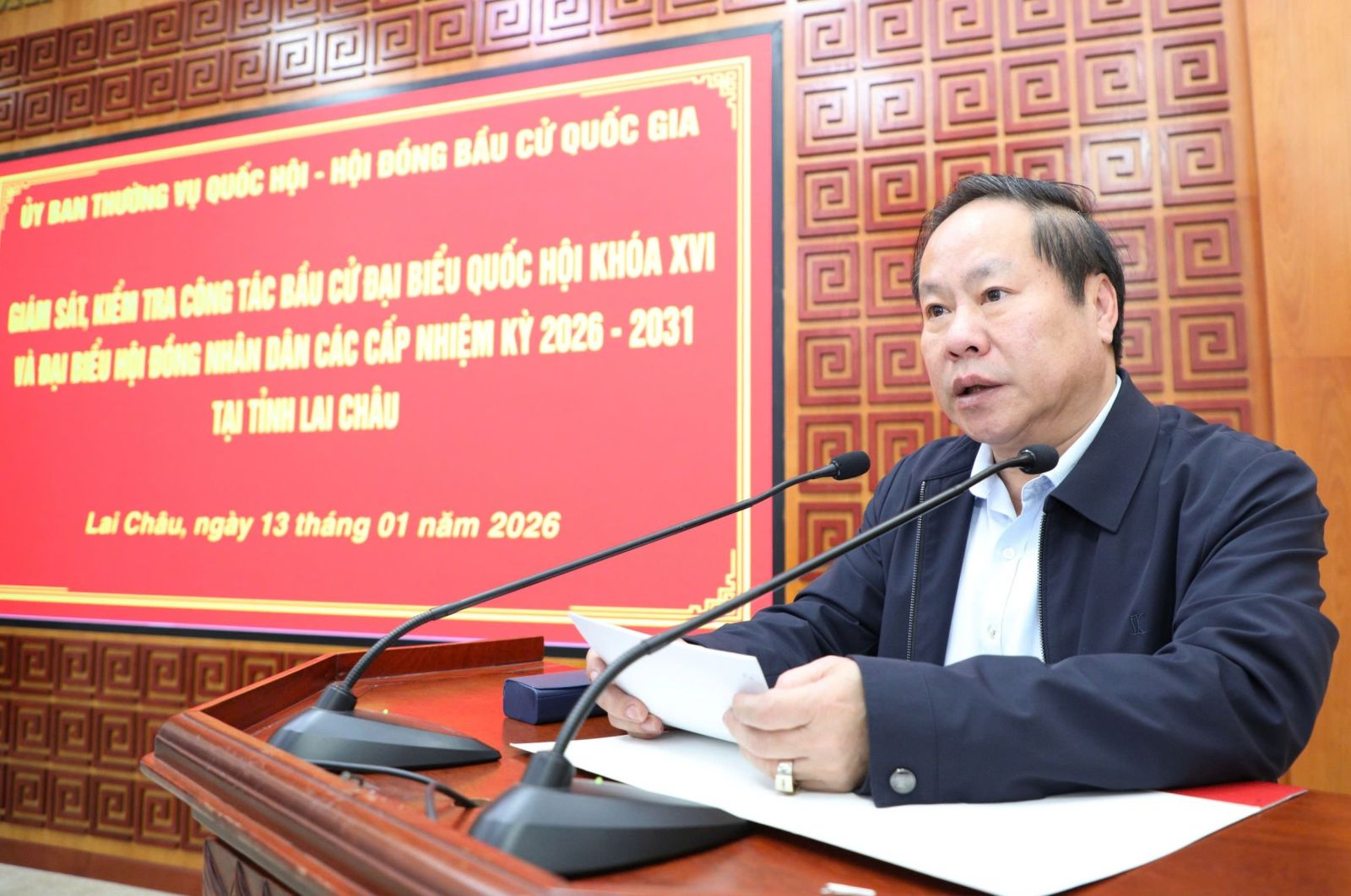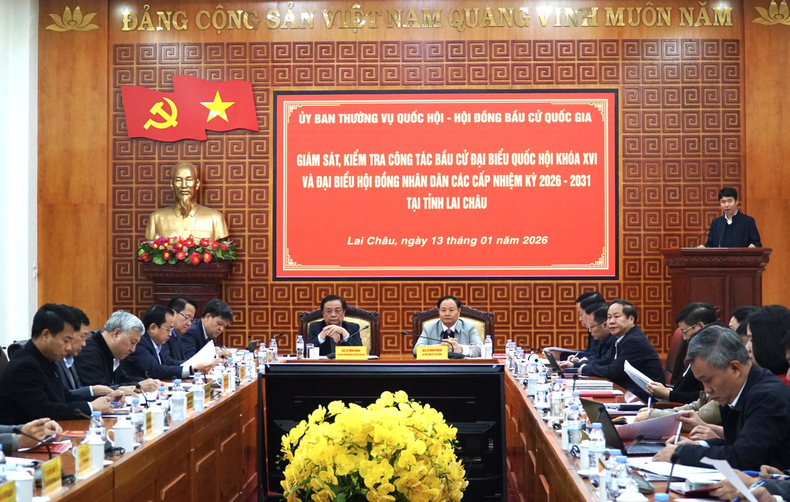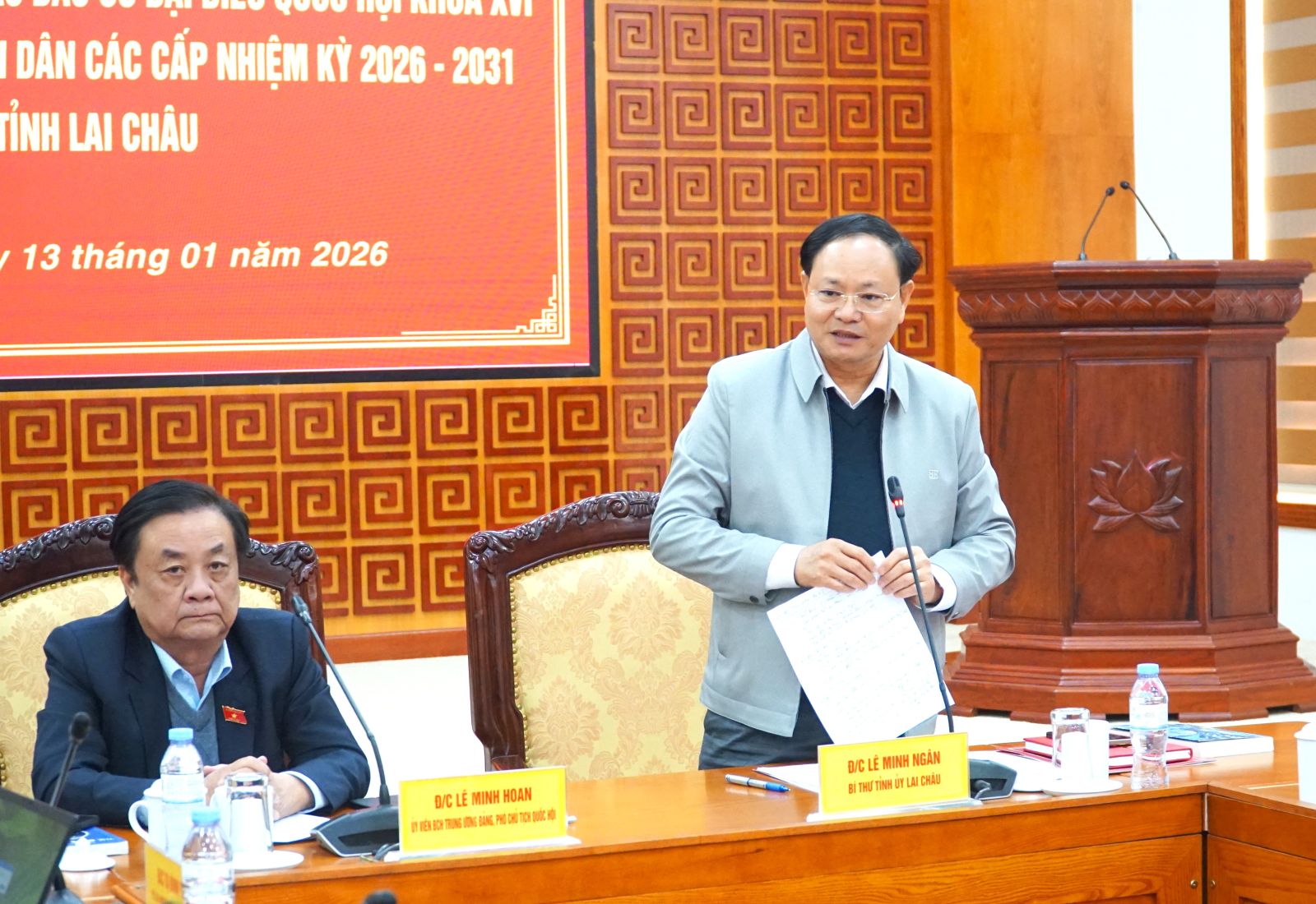 Làm việc với Ủy ban bầu cử tỉnh Lai Châu sáng nay (13/1) về công tác chuẩn bị bầu cử đại biểu Quốc hội khóa XVI và đại biểu HĐND các cấp nhiệm kỳ 2026 - 2031, đồng chí Lê Minh Hoan - Phó Chủ tịch Quốc hội chúc tỉnh Lai Châu sẽ hoàn thành tốt các công việc chuẩn bị để cuộc bầu cử đại biểu Quốc hội khóa XVI và đại biểu HĐND các cấp nhiệm kỳ 2026 - 2031 thực sự là ngày hội của toàn dân.