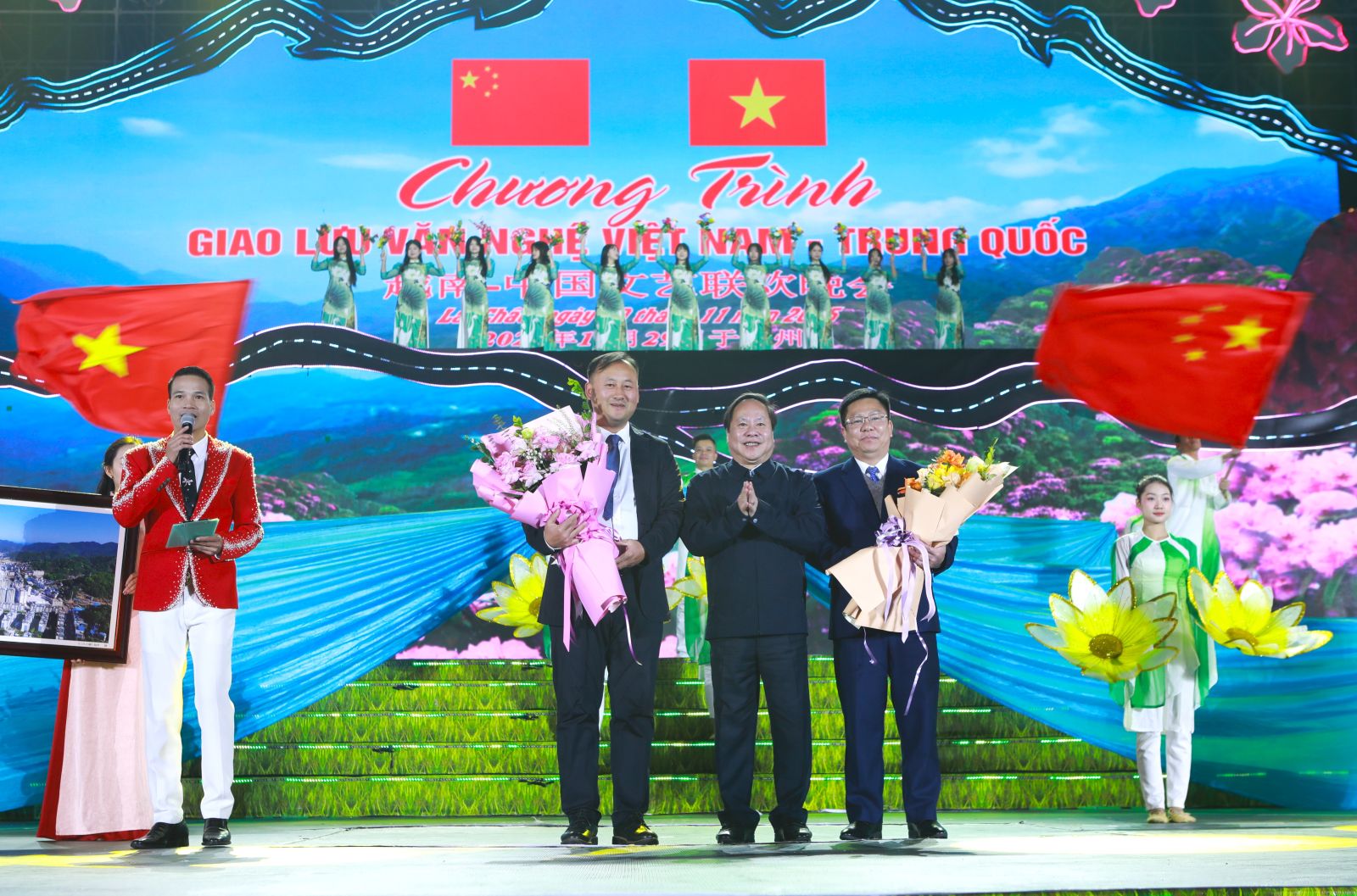 Đại biểu quốc tế có đồng chí Triệu Vĩ - Cục trưởng Cục Văn hóa và Du lịch châu Hồng Hà, tỉnh Vân Nam (Trung Quốc) và Đoàn công tác châu Hồng Hà, huyện Giang Thành, huyện Lục Xuân, tỉnh Vân Nam (Trung Quốc).