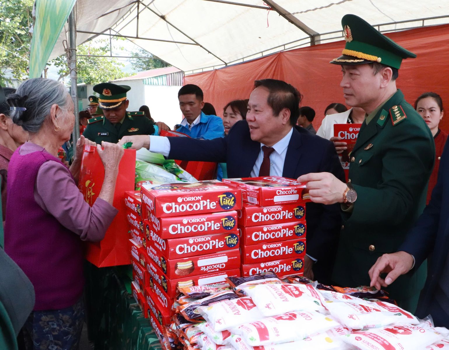 Nhân dịp này, đồng chí Phó Chủ tịch Thường trực UBND tỉnh đã trao quà, động viên Nhân dân bản Khổng Lào. Ủy ban Mặt trận Tổ quốc Việt Nam tỉnh trao 20 suất quà cho người có uy tín trên địa bàn xã Khổng Lào; Ban Tổ chức Chương trình đã trao 17 suất quà cho các hộ nghèo, hộ cận nghèo và gia đình chính sách; Ban Chỉ huy Bộ đội Biên phòng tỉnh tặng 20 chiếc điện thoại thông minh cho Nhân dân; trao 10 suất quà cho các em học sinh trong Dự án “Cán bộ, chiến sĩ quân đội nâng bước em đến trường” và Chương trình “Con nuôi Đồn Biên phòng”…